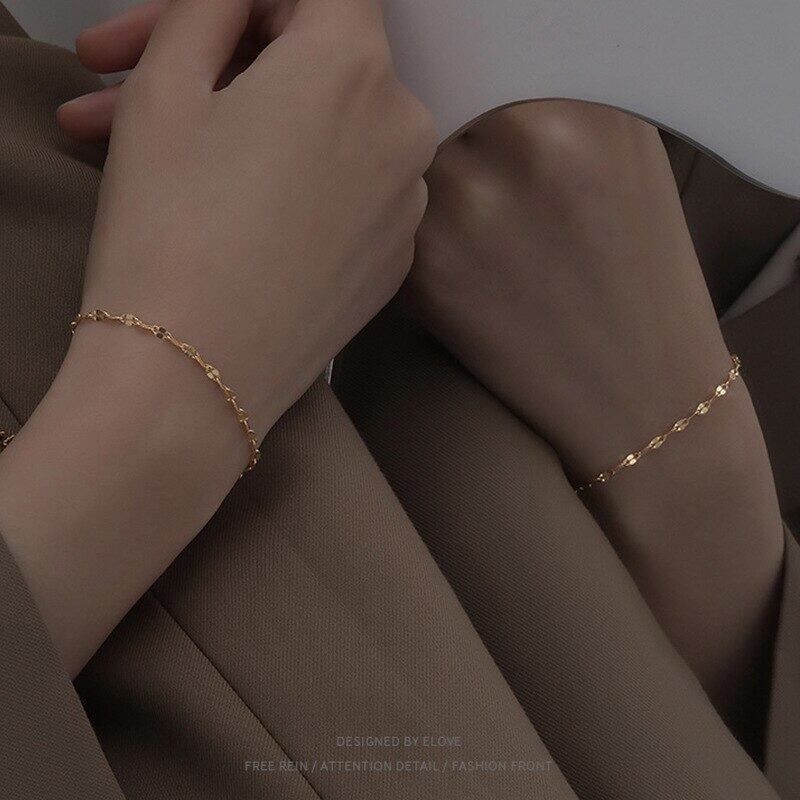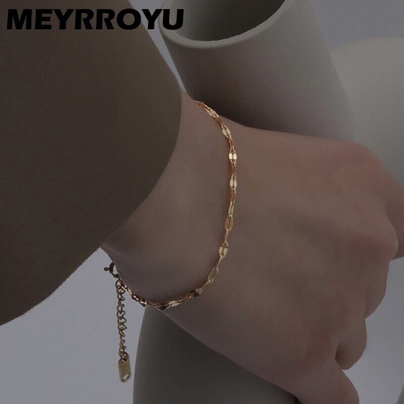 送料無料 Lステンレススチールゴールデンブレスレットラグジュアリーフラッシュリップルスパークリングチェーンブレスレット女性ミニマリストジュエリー アクセサリー AE001149506765723