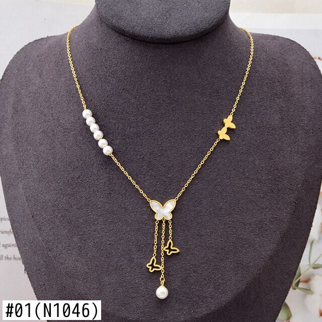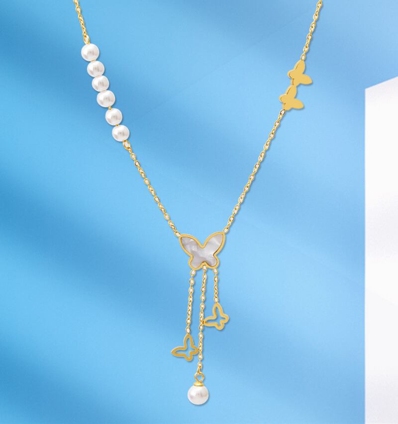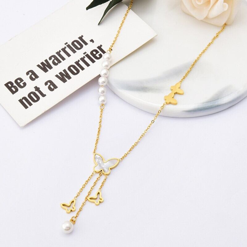 送料無料 MEYRROYUステンレススチールゴールドカラーパールバタフライロングテルネックレスレディースチョーカー2021トレンディなギフトジュエリー レース 真珠 アクセサリー AE001190784414471