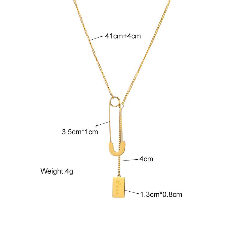 送料無料 MEYRROYUステンレススチールゴールドカラーピン長方形タグトレンディなシンプルなネックレス2021ガールズジュエリーコリアー レース アクセサリー AE001168528256139