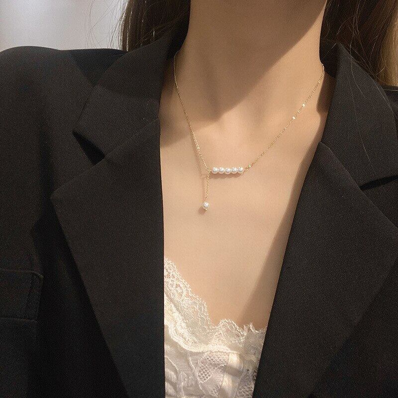 送料無料 MEYRROYUステンレススチールシンプルパールチョーカーネックレス女性2022トレンディな高級気質鎖骨チェーンジュエリー レース 真珠 アクセサリー AE001135053558115