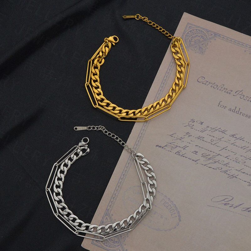 送料無料 MEYRROYUステンレススチールダブルレイヤーゴールドカラーシルバーカラー太いロープブレスレット2021女性男性パーティージュエリーギフト 銀 アクセサリー AE001181286591912