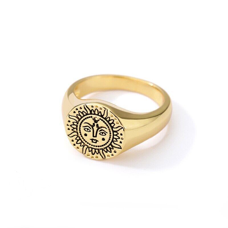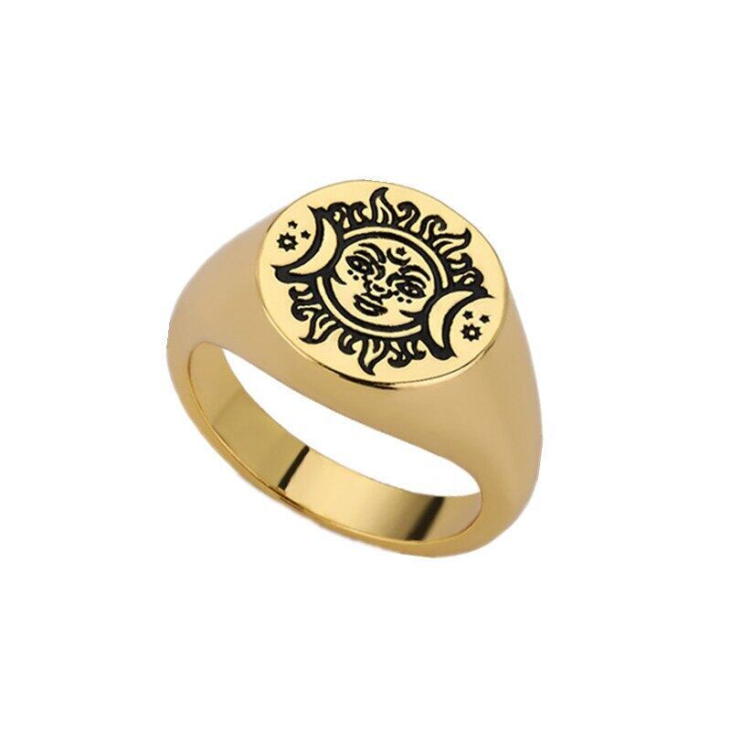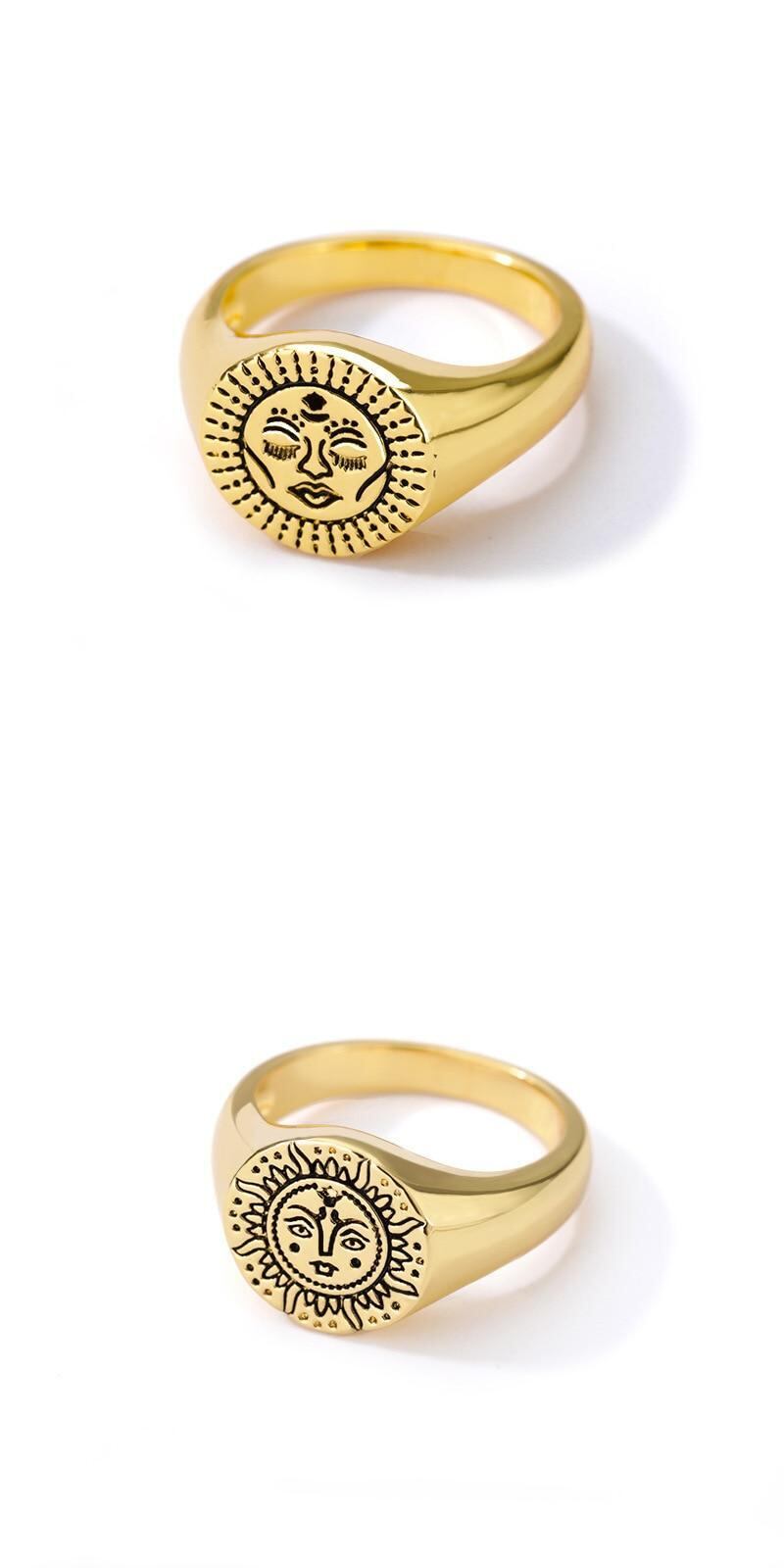 送料無料 MEYRROYUステンレススチールゴールドカラーひまわりスマイリーリングアクセサリー2021トレンド女性カップルギフトパーティージュエリー 指輪 フラワーデザイン アクセサリー AE001151380404501