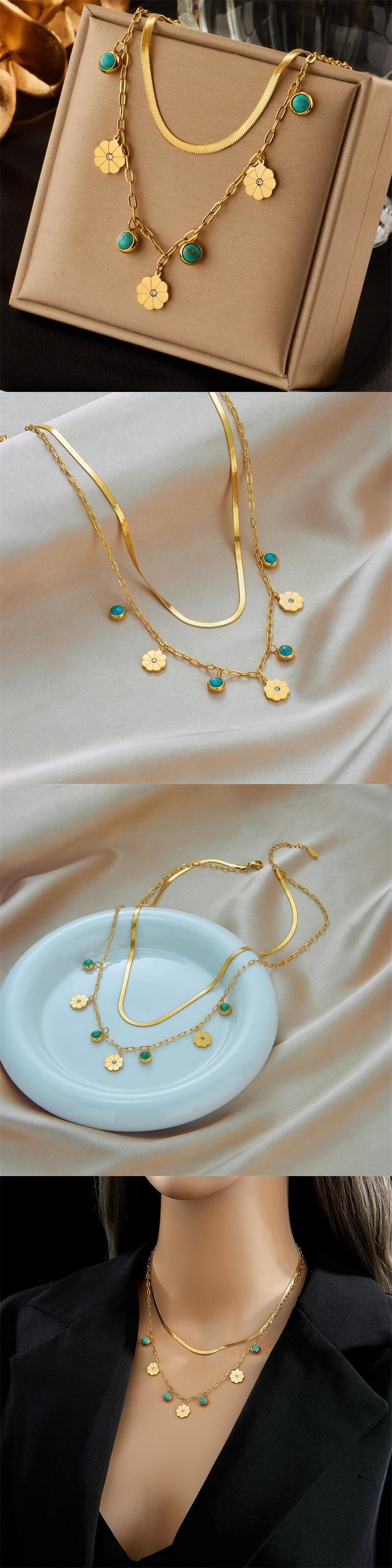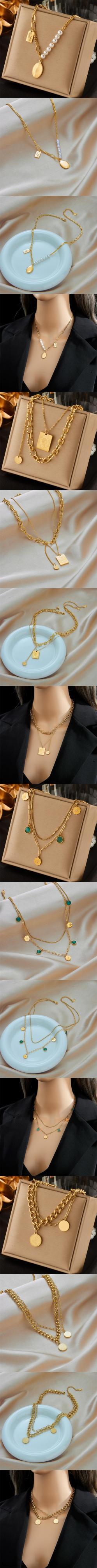 送料無料 lステンレススチールグリーンストーンクリスタルヒップホップマルチレイヤーペンダントチェーンネックレス女性のウェディングパーティーアクセサリー レース アクセサリー AE001193676626711