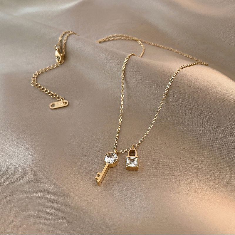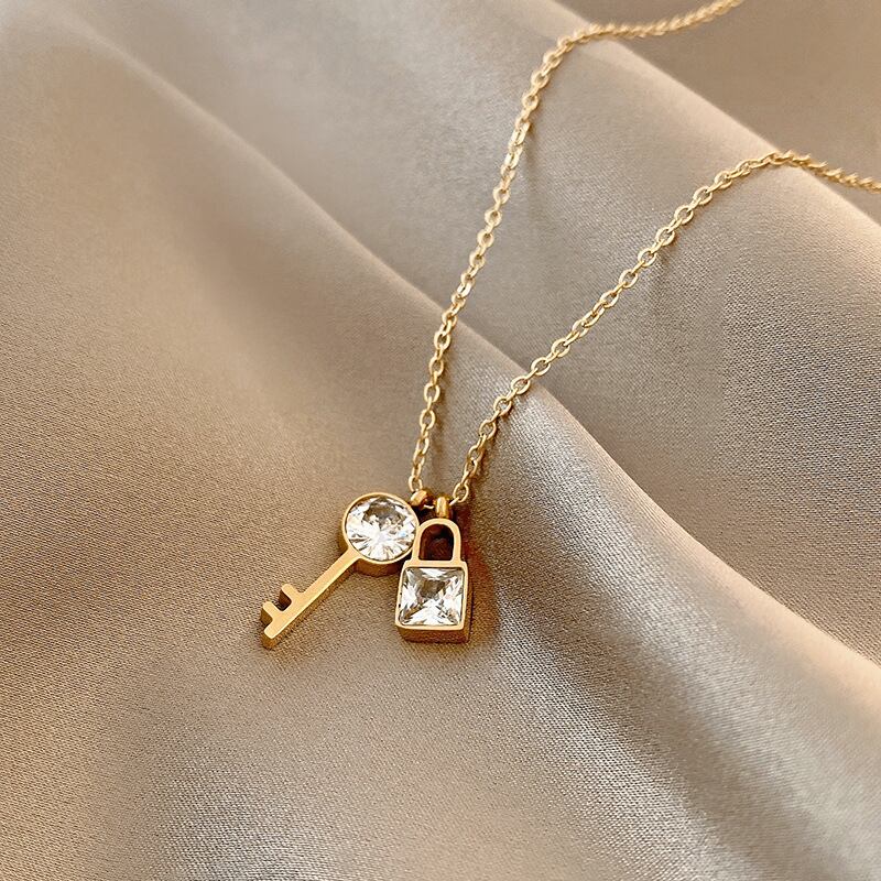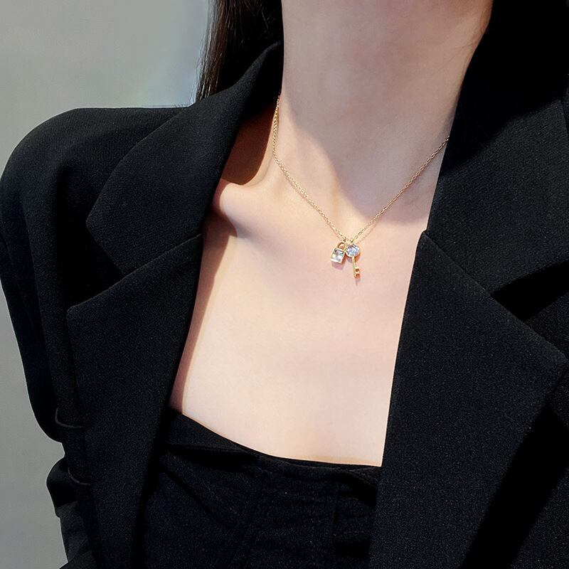 送料無料 MEYRROYUステンレススチールトレンディキーロックペンダントジルコンネックレス女性気質ワイルド鎖骨チェーンジュエリーアクセサリー レース アクセサリー AE001180504313263