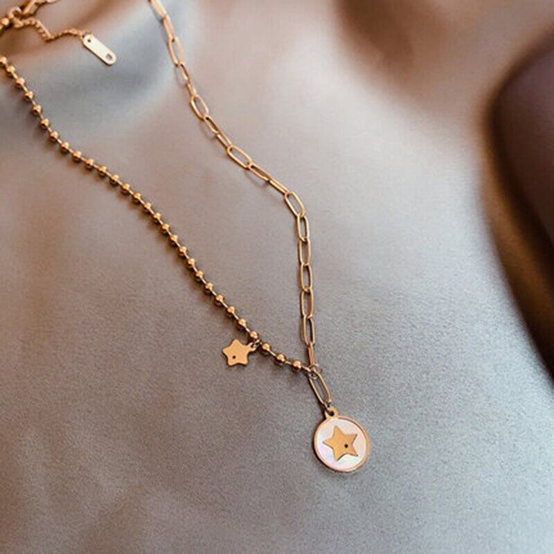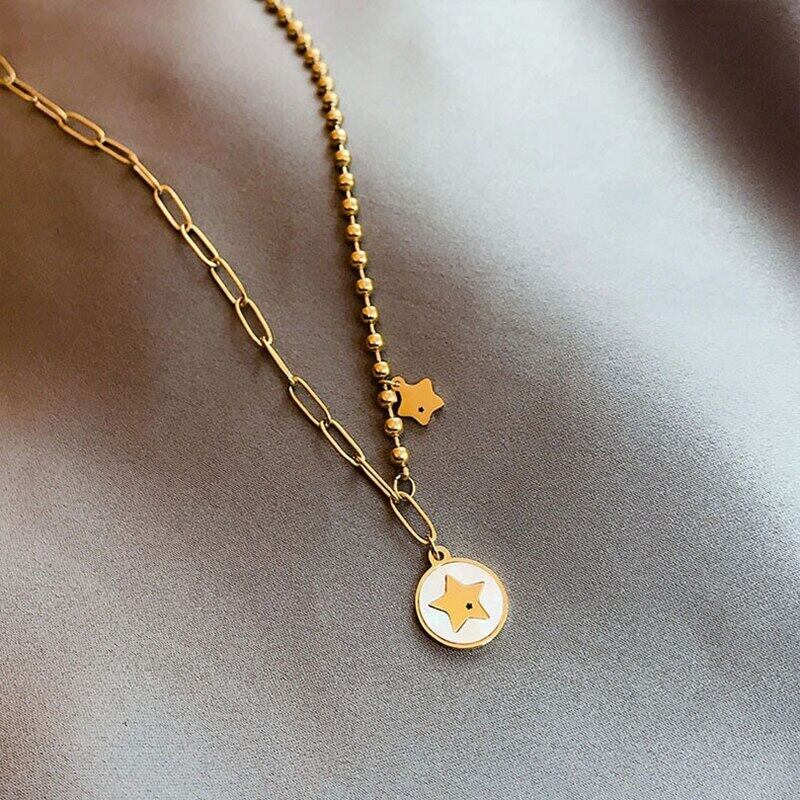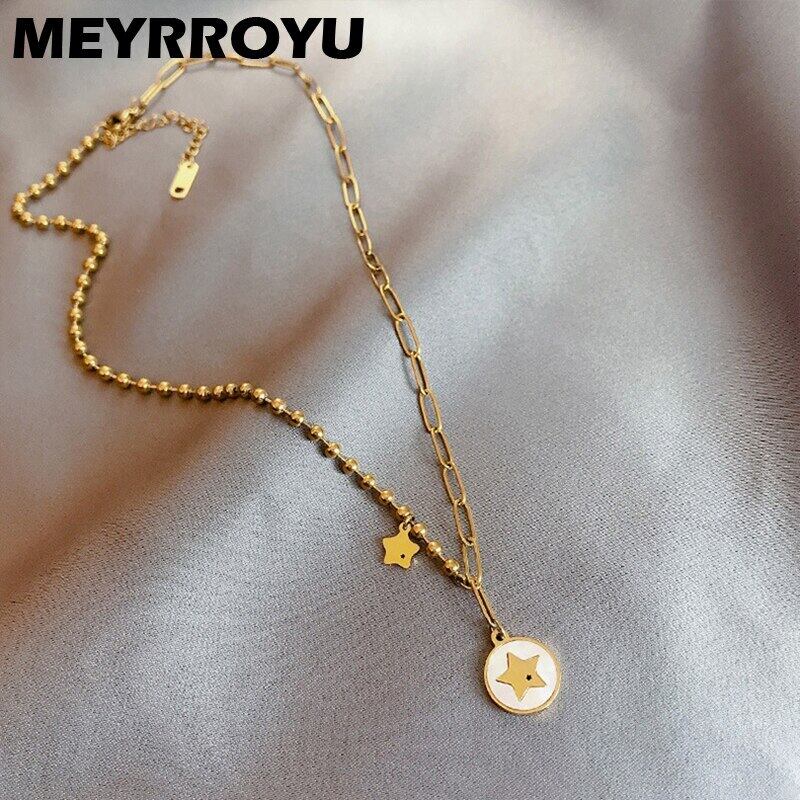 送料無料 MEYRROYUステンレススチールパンクヒップホップジオメトリックシェルスタータグネックレス2021トレンドチェーンギフトパーティージュエリー レース アクセサリー AE001144993936676