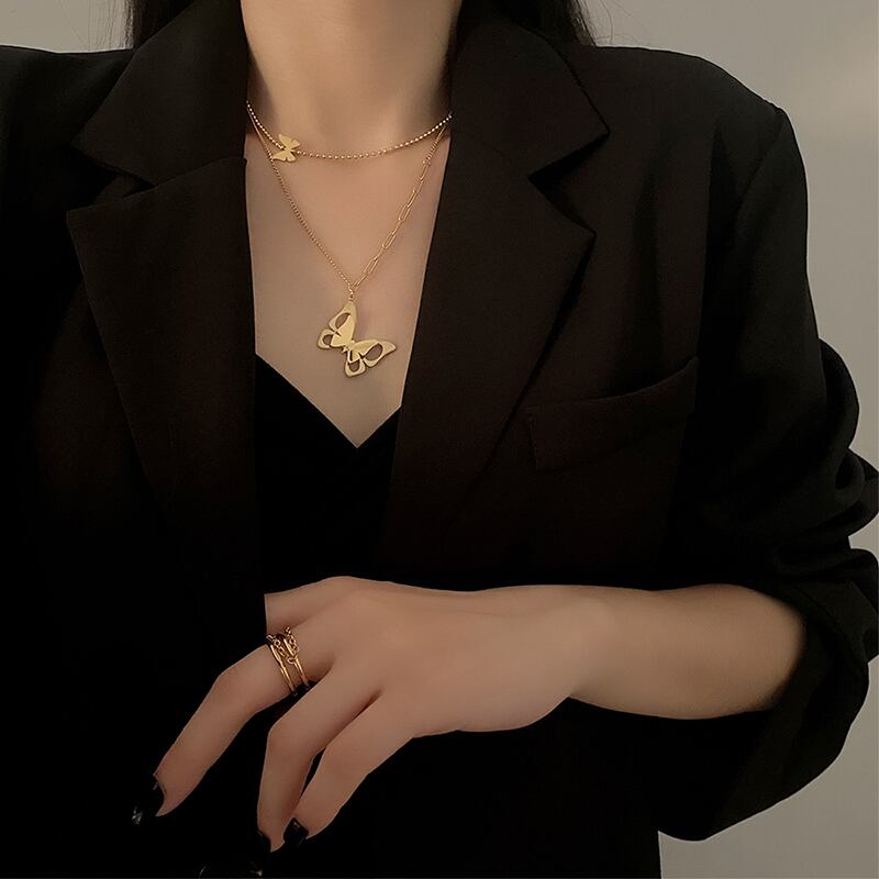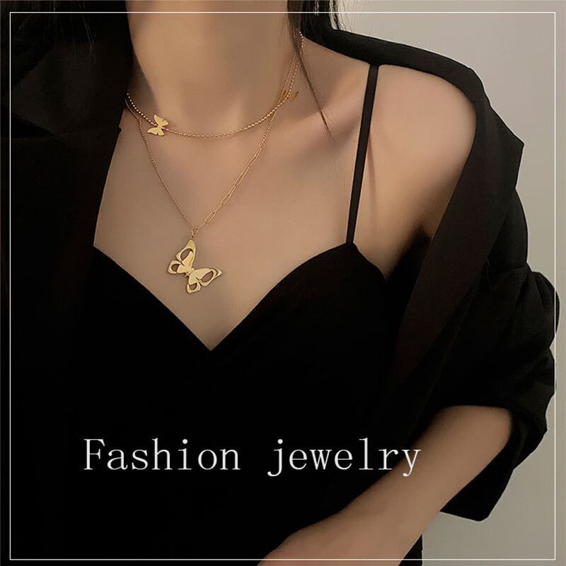 送料無料 MEYRROYUステンレススチール2層中空バタフライペンダントネックレス女性2021トレンディなパーティージュエリーカラーパラ レース アクセサリー AE001138914205708