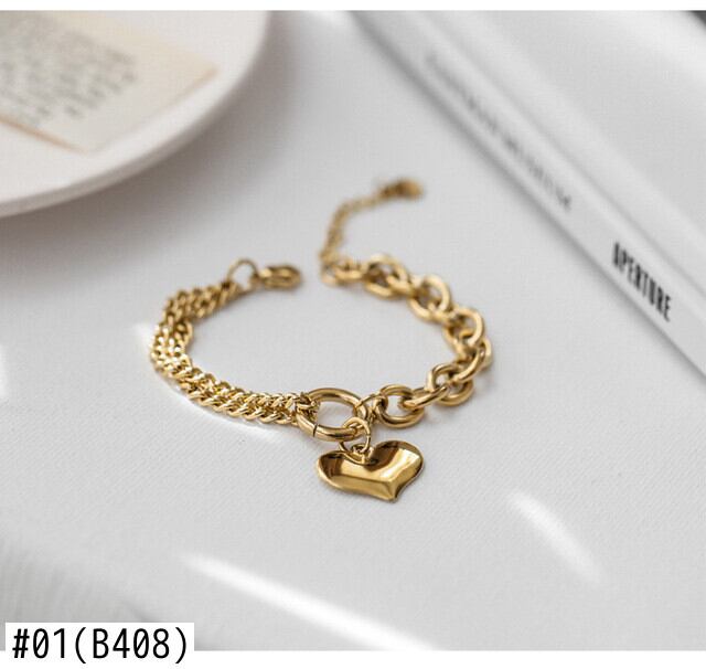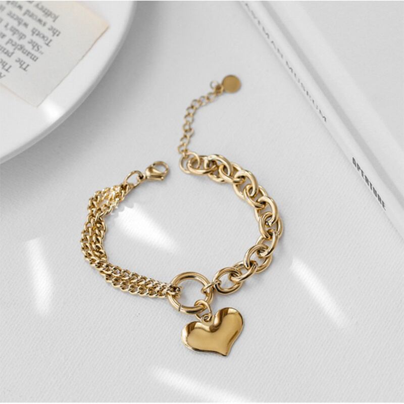 送料無料 MEYRROYUステンレススチールゴールドカラーハートブレスレットヴィンテージ太いチェーン女性ギフトパーティージュエリー ビンテージ アクセサリー AE001122974606737