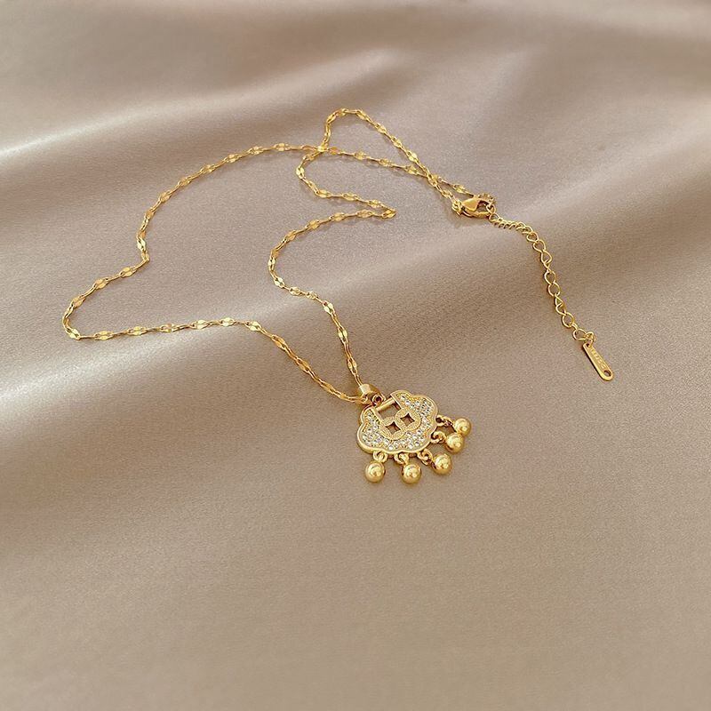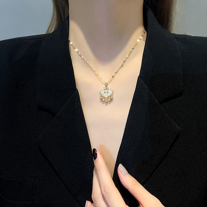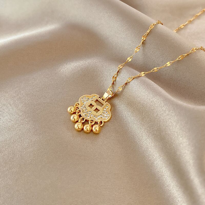 送料無料 MEYRROYUステンレススチールセーフロックネックレス女性トレンディなラウンドビーズジルコンペンダントクラビクルチェーンパーティージュエリーギフト レース アクセサリー AE001113377785663