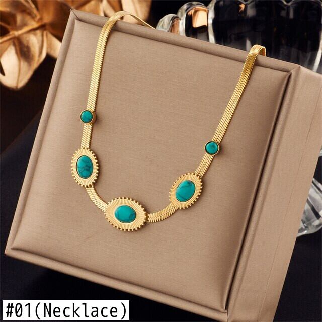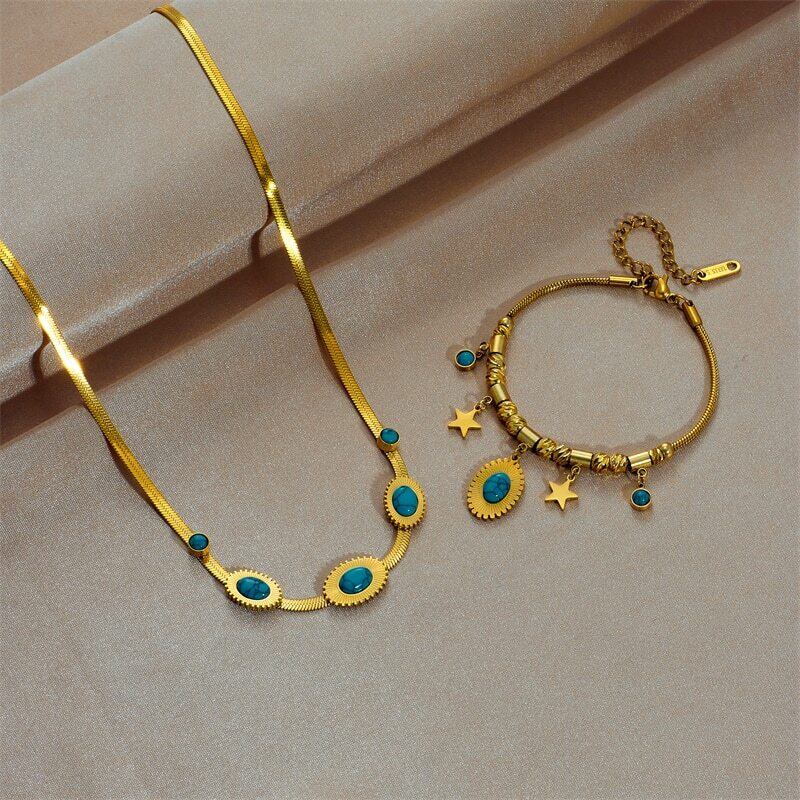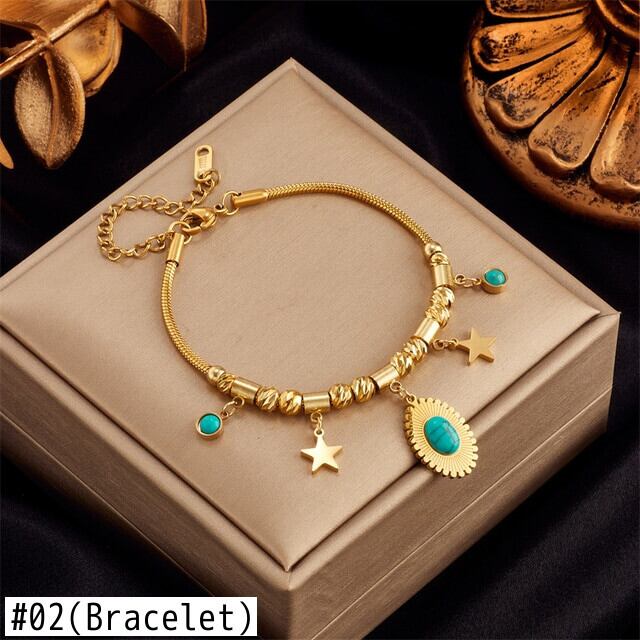 送料無料 ステンレス鋼グリーンストーンスターTelスネークチェーンジュエリーセット女性のネックレスとブレスレットパーティーギフト レース アクセサリー AE001146778205818