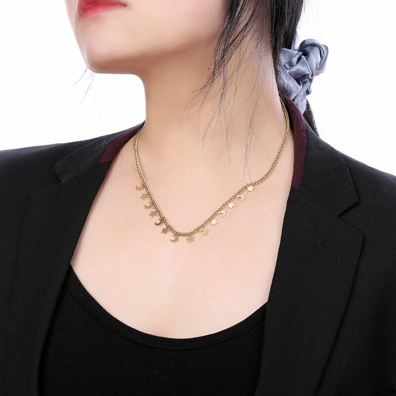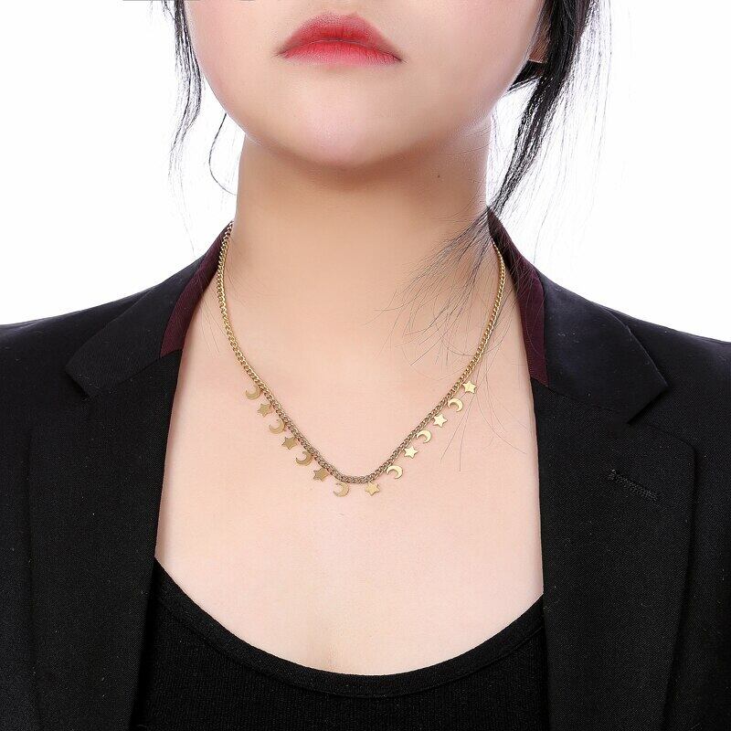 送料無料 MEYRROYUステンレススチールロマンティック2カラーミニムーンスターネックレスレディース細いチェーン2021トレンドパーティーギフトジュエリー レース アクセサリー AE001152634898343