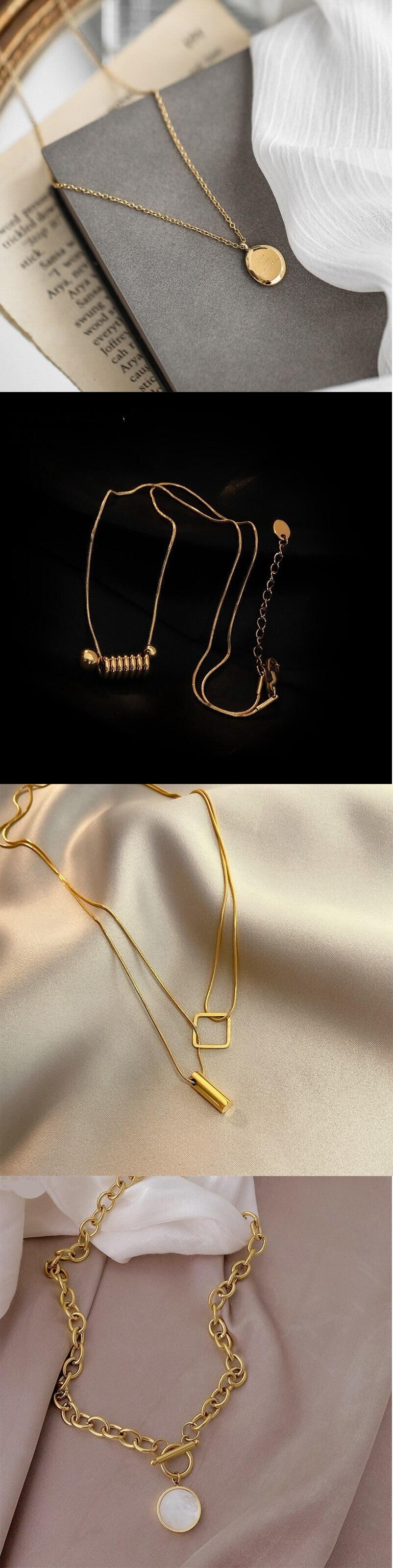 送料無料 MEYRROYUステンレス鋼多層幾何学的ペンダントネックレス女性2021トレンドロマンチックなパンクパーティーギフトジュエリー レース アクセサリー AE00116564762431