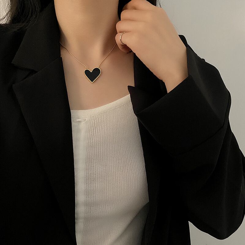 送料無料 MEYRROYUステンレススチールパンクブラックエナメルハートペンダントネックレスレディースファインチェーン2021トレンドパーティーギフトジュエリー レース アクセサリー AE001192249171394