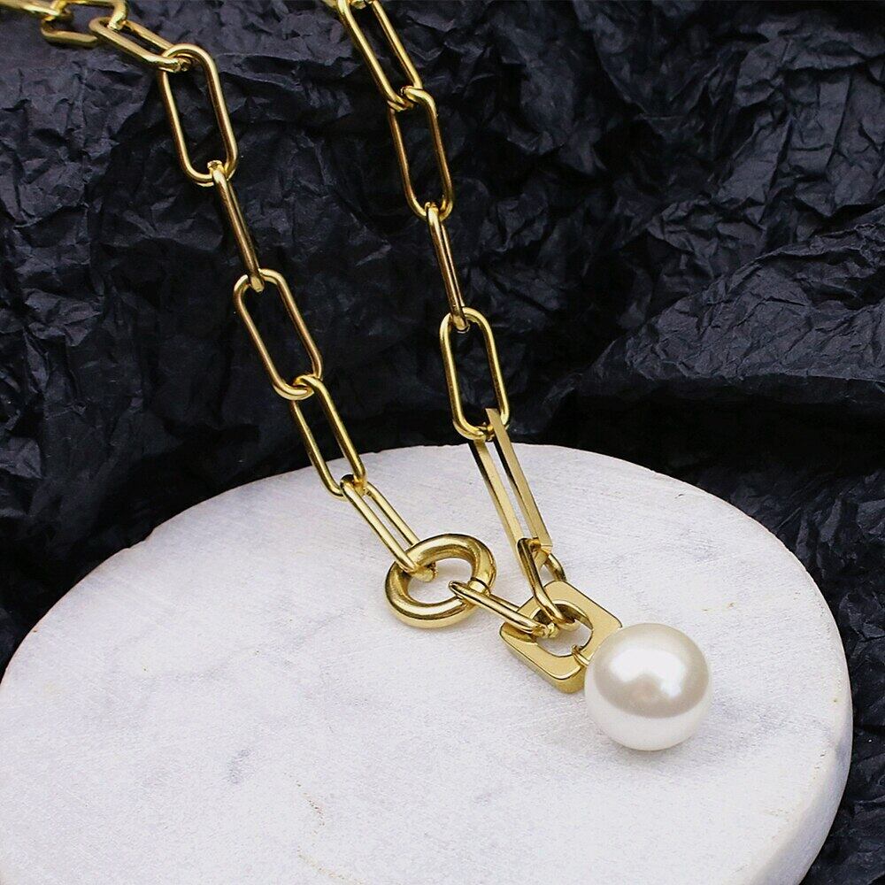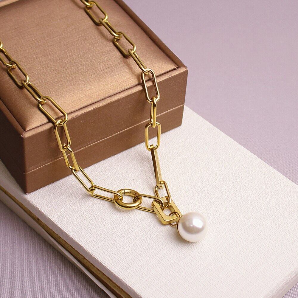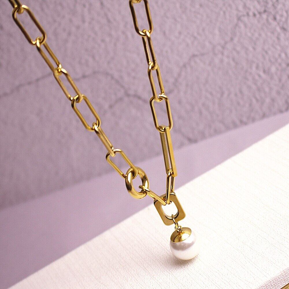 送料無料 MEYRROYUステンレススチールパールペンダント幾何学的なネックレス女性ゴールドカラーチョーカー2021トレンドロマンチックなギフトジュエリー レース 真珠 アクセサリー AE001189668871402