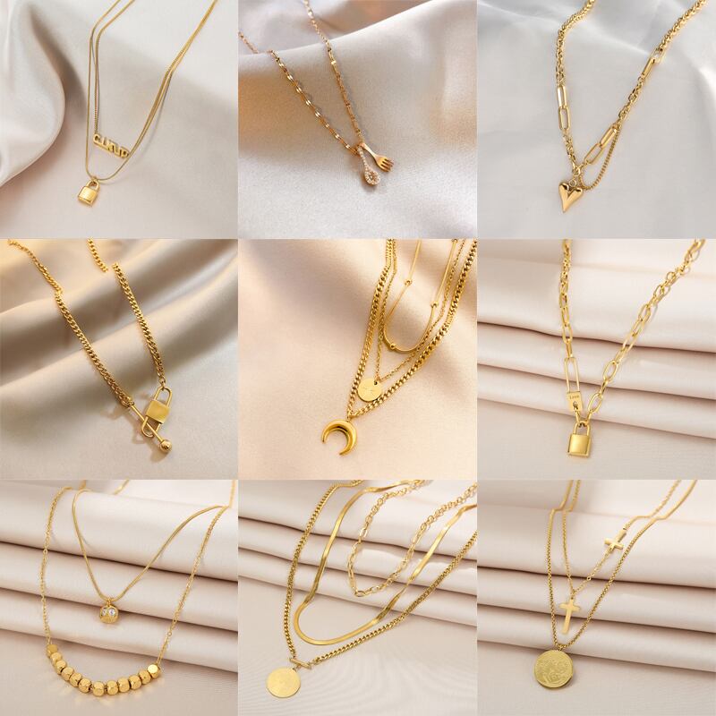 送料無料 MEYRROYUステンレス鋼2021トレンドゴールドカラー幾何学ネックレス女性チェーンチョーカーパーティーギフトジュエリーコーラー レース アクセサリー AE001111538660750