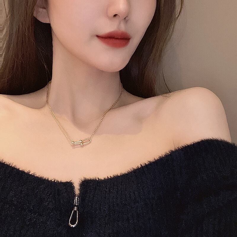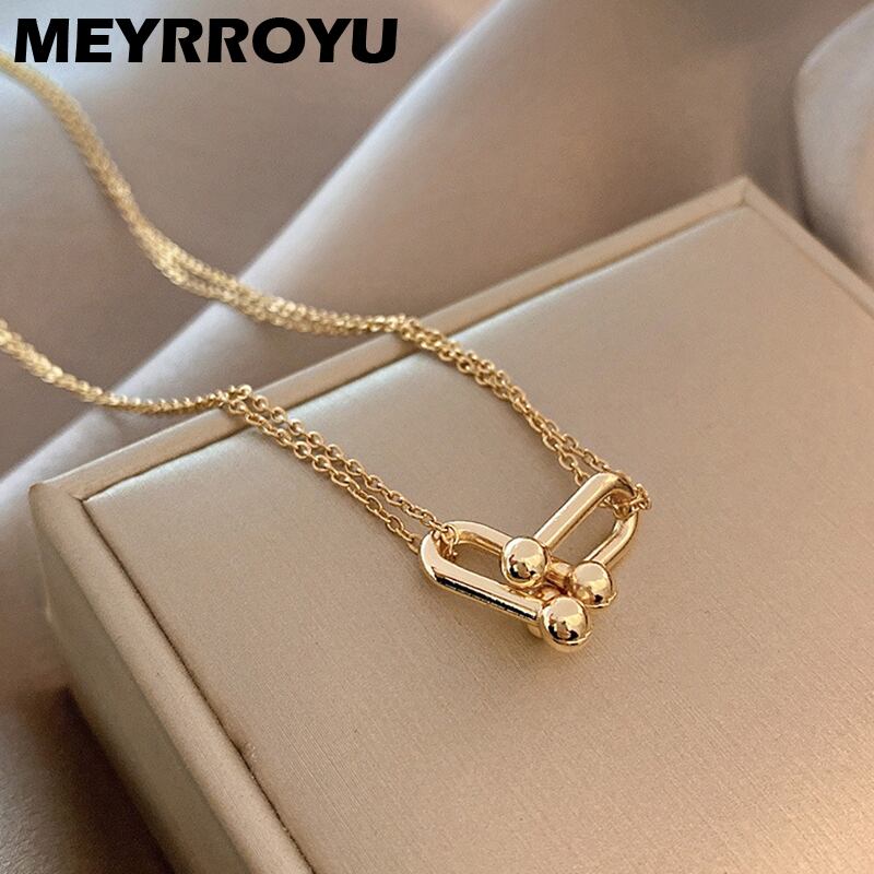 送料無料 MEYRROYUステンレススチールU字型ダブルリングペンダントネックレス女性の個性シンプルなゴールドクラビクルチェーンパンクジュエリー レース 指輪 アクセサリー AE001197339336643