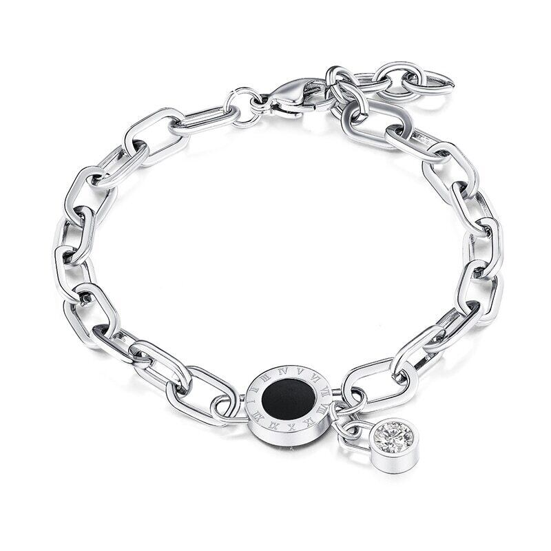 送料無料 MEYRROYUステンレス鋼パンク幾何学的なエナメルローマ数字ブレスレット女性2021トレンドギフトジュエリー アクセサリー AE001159742760952