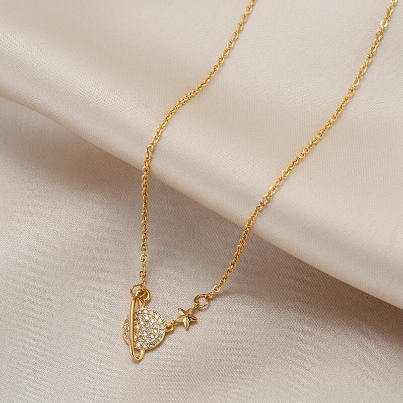 送料無料 MEYRROYUステンレススチールラインストーンホロープラネットペンダントネックレスレディースチェーン2021トレンドロマンティックギフトジュエリー レース アクセサリー AE001172900444091