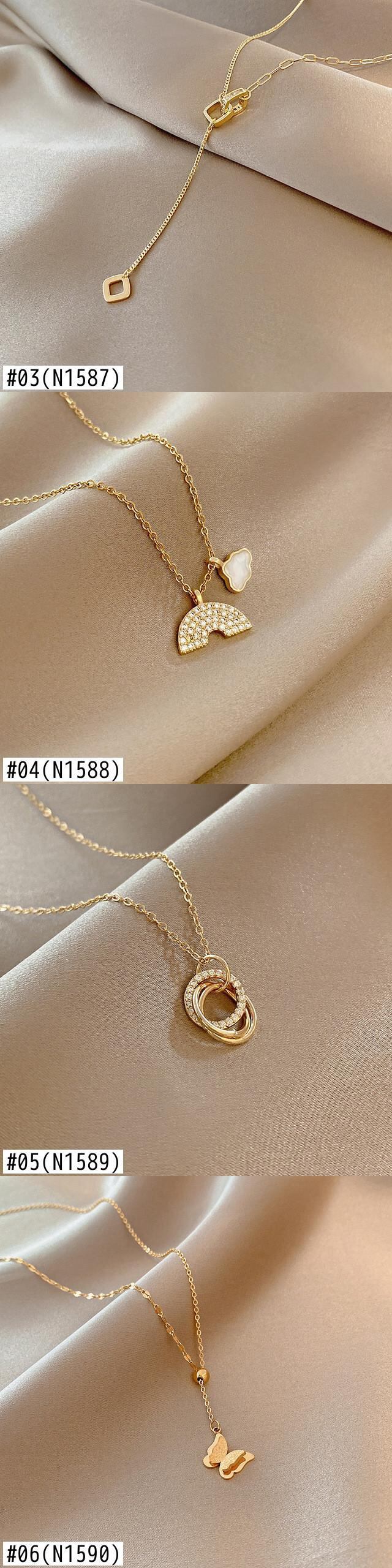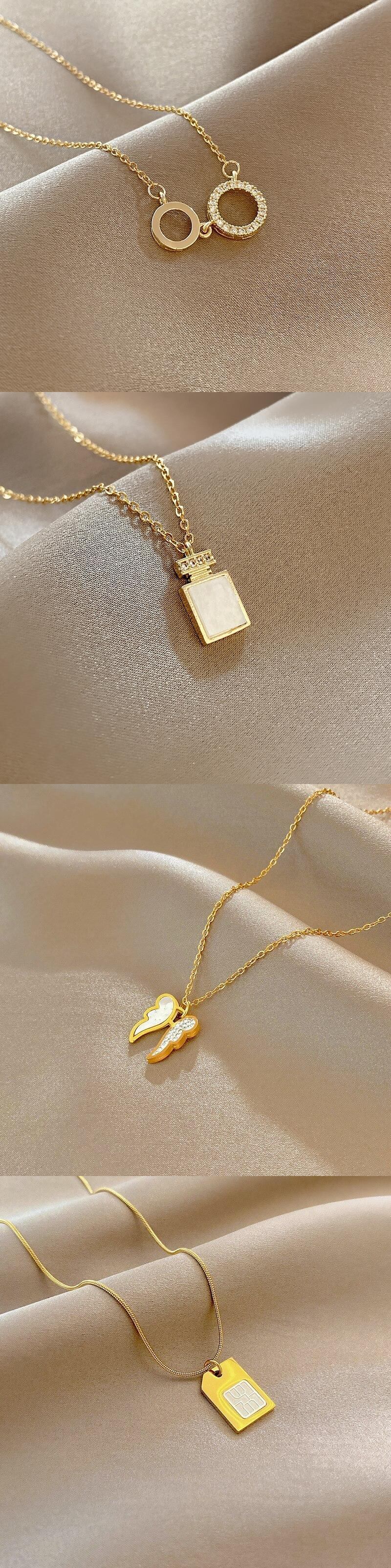 送料無料 ハートラウンドムーンゴールドカラーステンレススチールネックレス女性ペンダント鎖骨チェーンジュエリー レース アクセサリー AE001132360727560