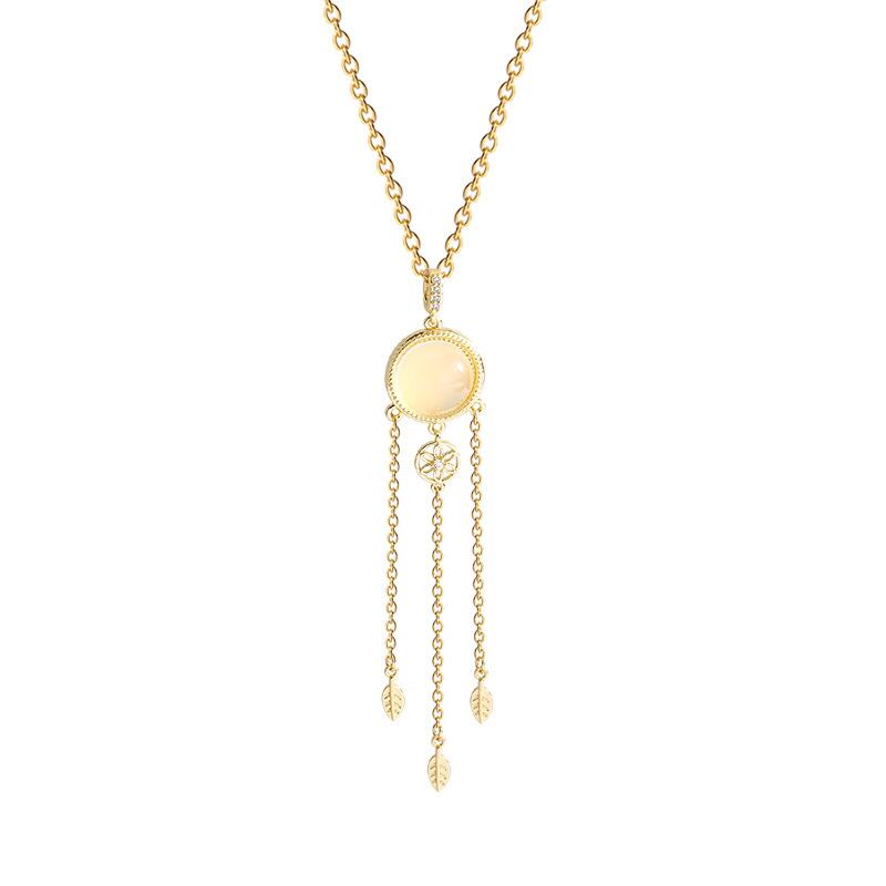 送料無料 MEYRROYUステンレススチールオパールリーフテルペンダントネックレス女性2021ヴィンテージテンペラメントロングジュエリーパーティーギフト レース 蛋白石 ビンテージ アクセサリー AE001161322129356