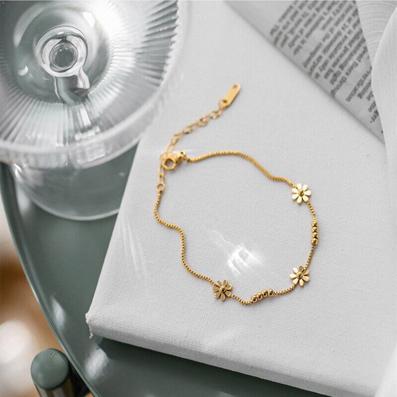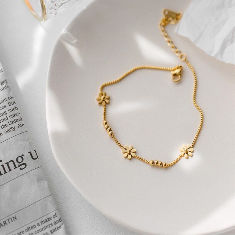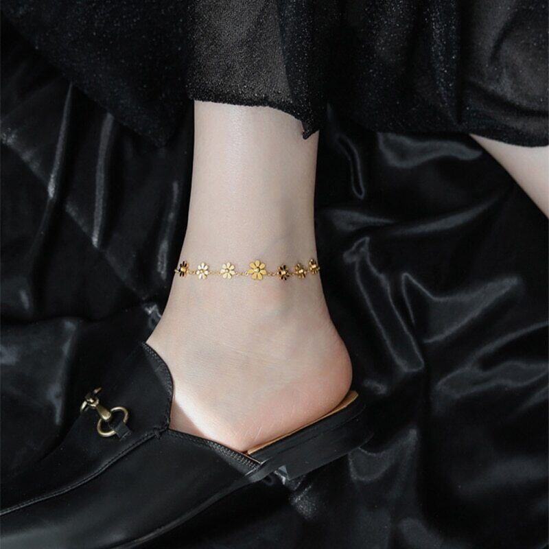 送料無料 MEYRROYUステンレススチールゴールドカラーフラワーアンクレット女性トレンディチャームフェアリーアンクレット2021ホットフットジュエリー フラワーデザイン アクセサリー AE001191004637689