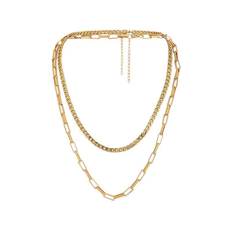 送料無料 MEYRROYUダブルレイヤーステンレススチールゴールデンロングネックレスメンズパーソナリティシンプルホローシックチェーンパンクジュエリー レース アクセサリー AE001189046537253
