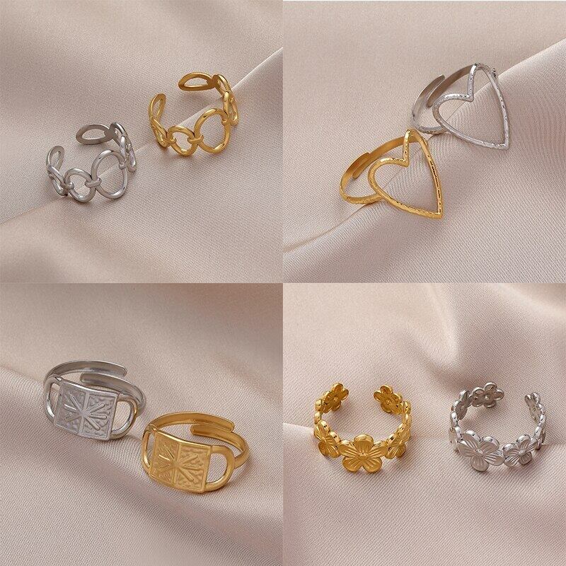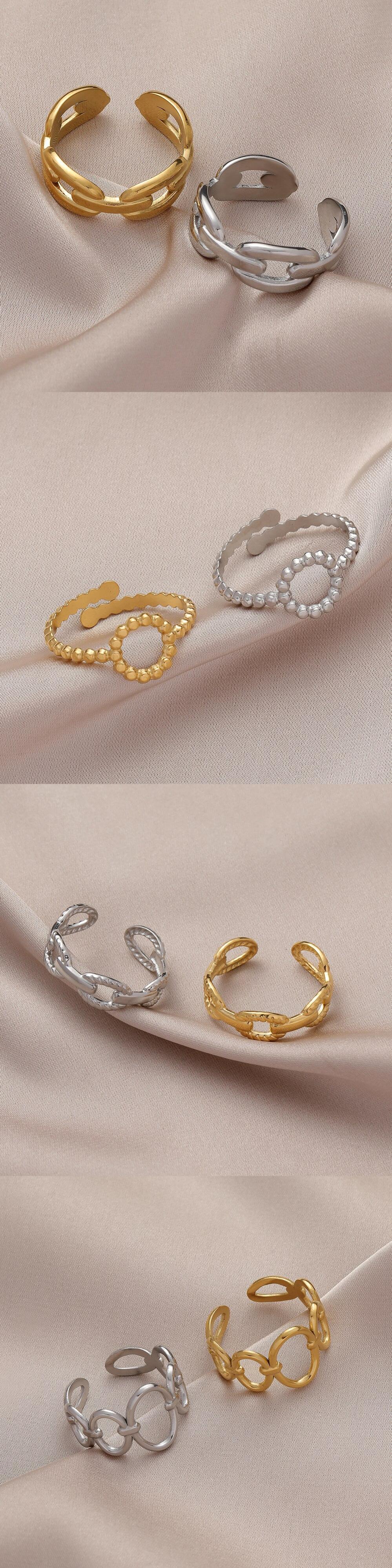 送料無料 MEYRROYUステンレススチール2色幾何学リング2021トレンドアジャスタブルオープニングリングレディースパンクパーティーギフトジュエリー 指輪 アクセサリー AE001175019224569