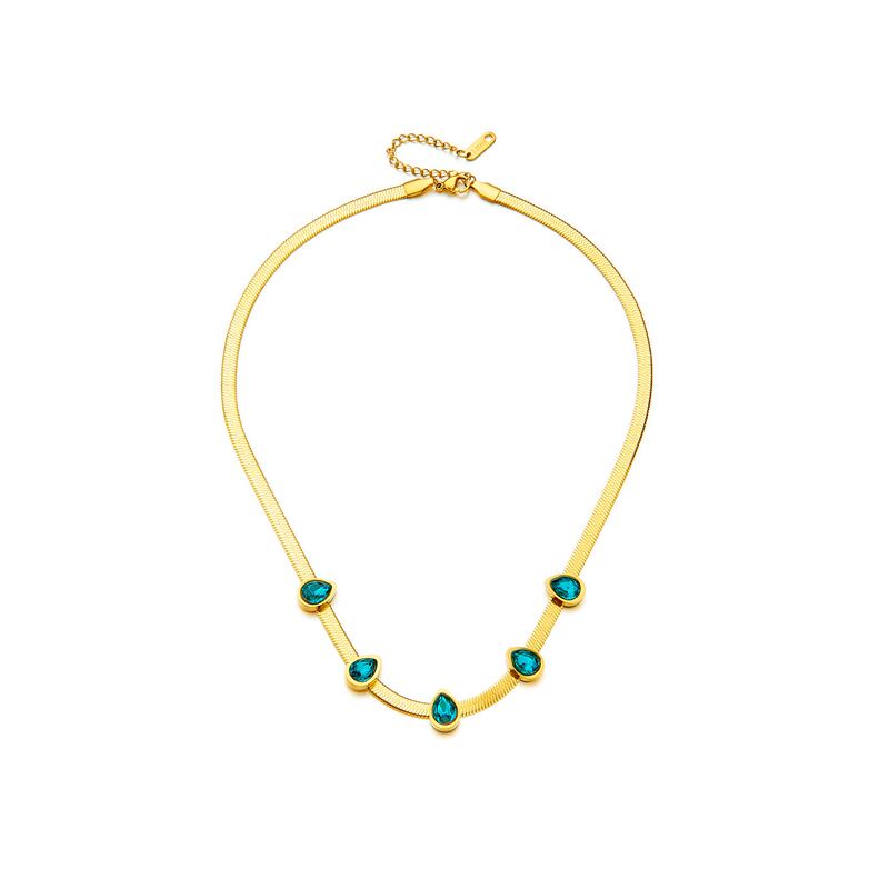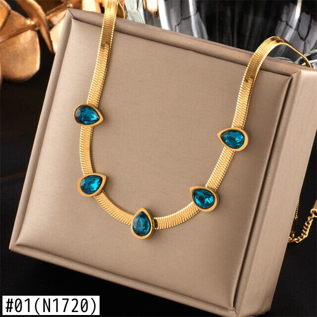 送料無料 Lステンレススチールゴールドカラーウォーターブルーキュービックジルコニアネックレスレディースパーティーギフトアクセサリー2022 レース 風信子石 アクセサリー AE001121023785112