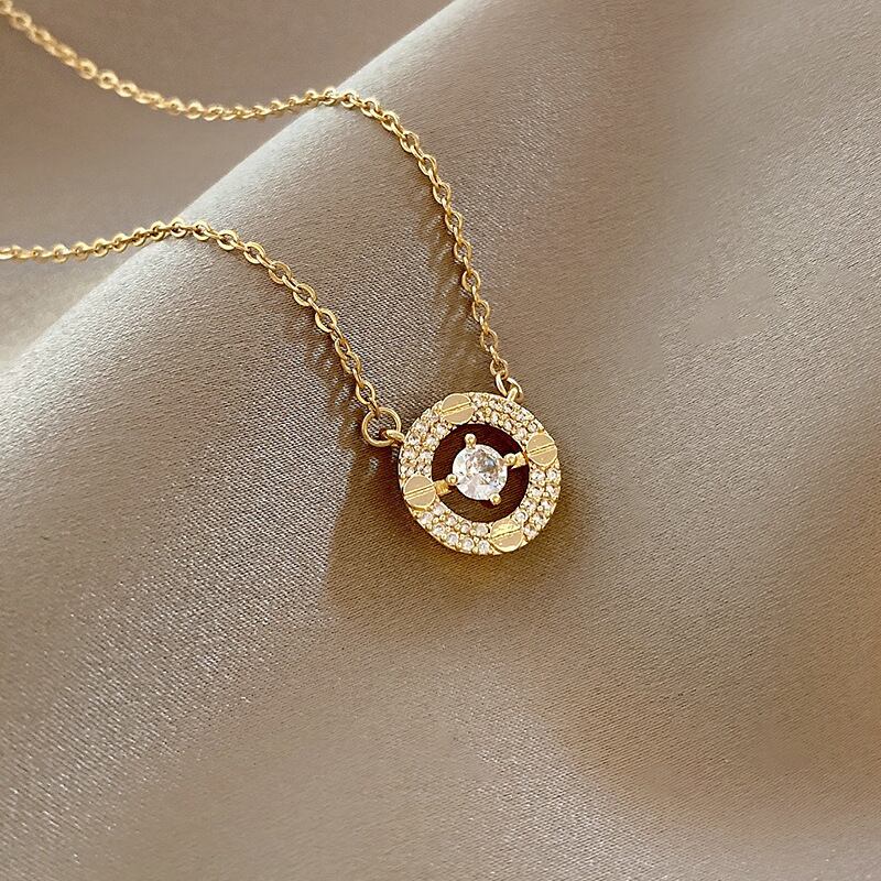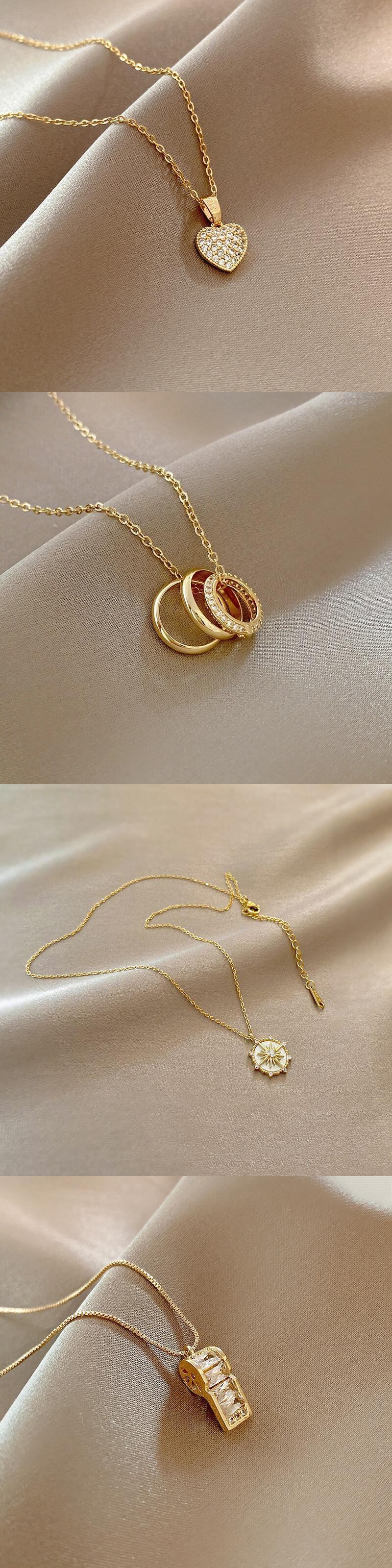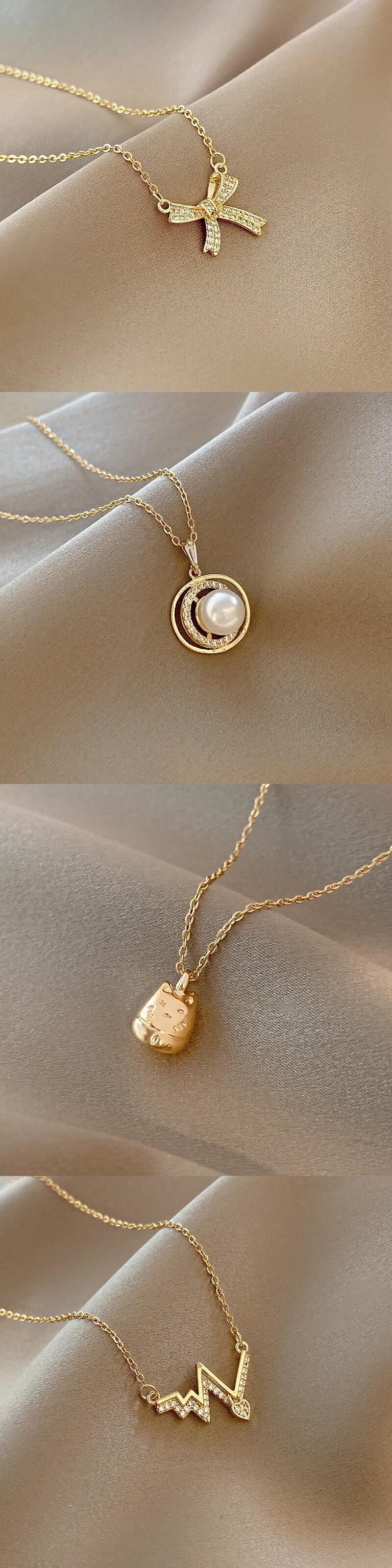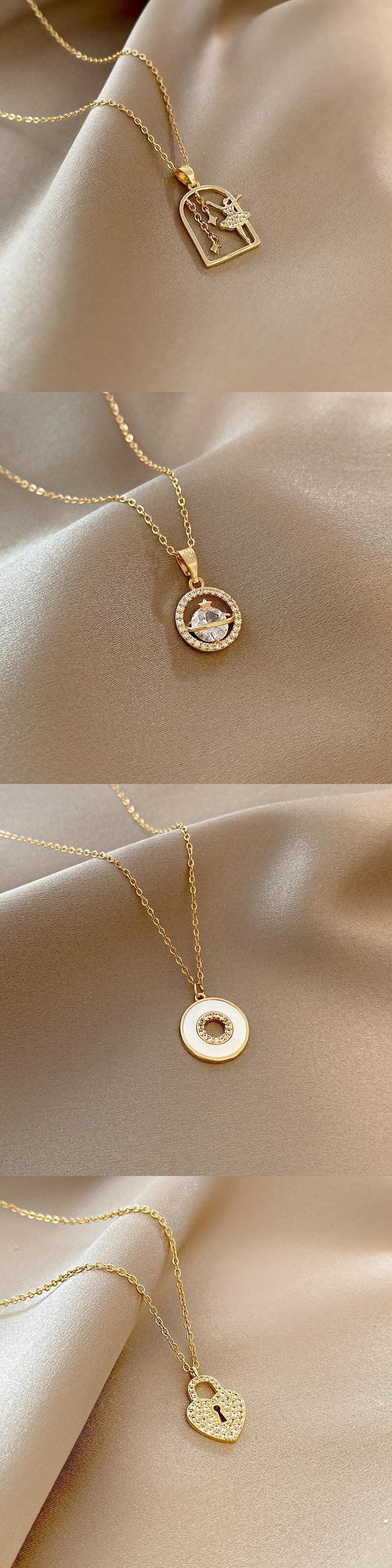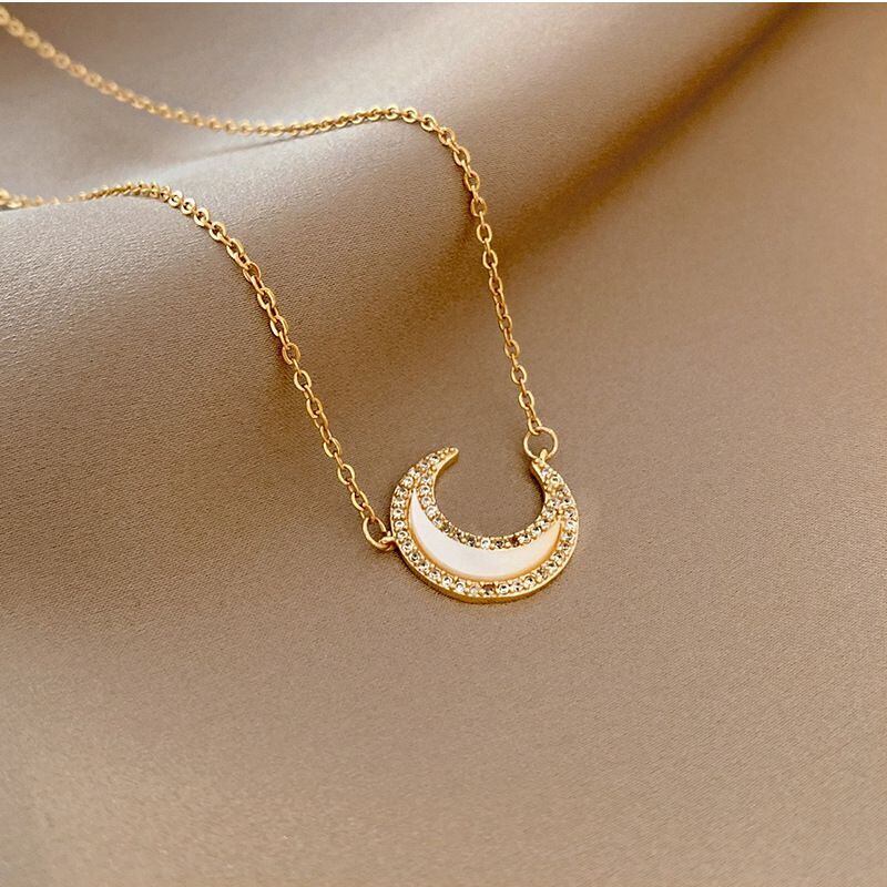 送料無料 ジオメトリームーンゴールドカラーステンレススチールネックレスレディースペンダントクラビクルチェーンジュエリー レース アクセサリー AE001162230624263