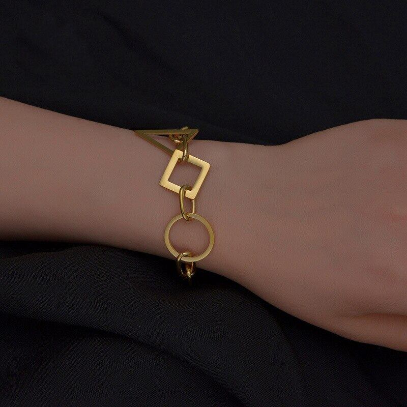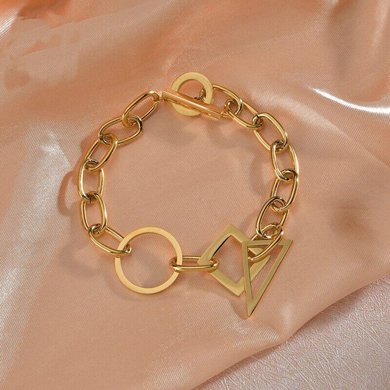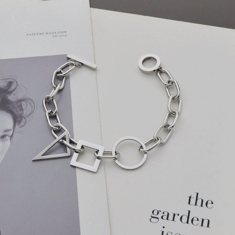 送料無料 MEYRROYUステンレス鋼2色幾何学的なチェーンブレスレット女性男性2021トレンドギフトフェスティバルパーティージュエリーPulsera アクセサリー AE001145592648748