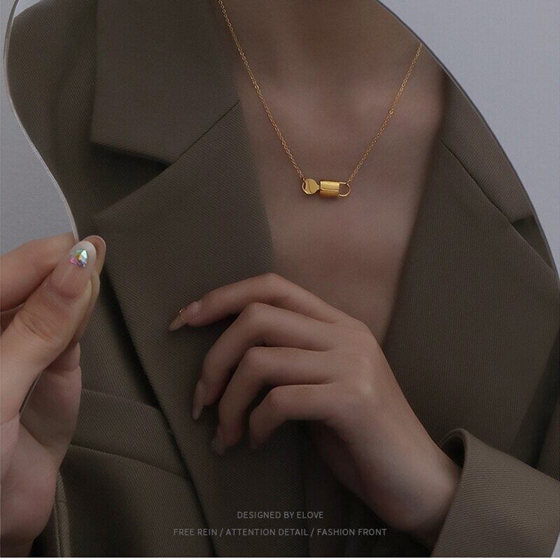 送料無料 MEYRROYUステンレススチールロマンティックゴールドカラーロックキーペンダントネックレスレディースチェーン2021トレンドパーティーギフトジュエリー レース アクセサリー AE001185920514624