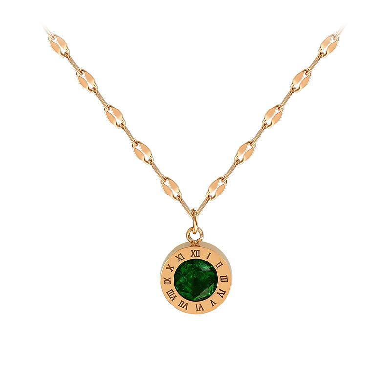 送料無料 MEYRROYUステンレススチールグリーンラインストーンローマ数字ペンダントネックレス女性2021トレンドロマンティックギフトジュエリー レース アクセサリー AE001125627957815