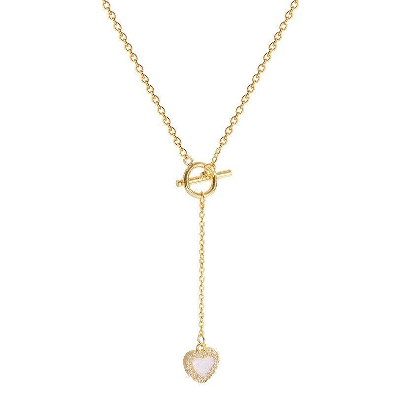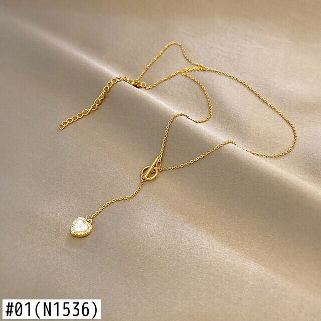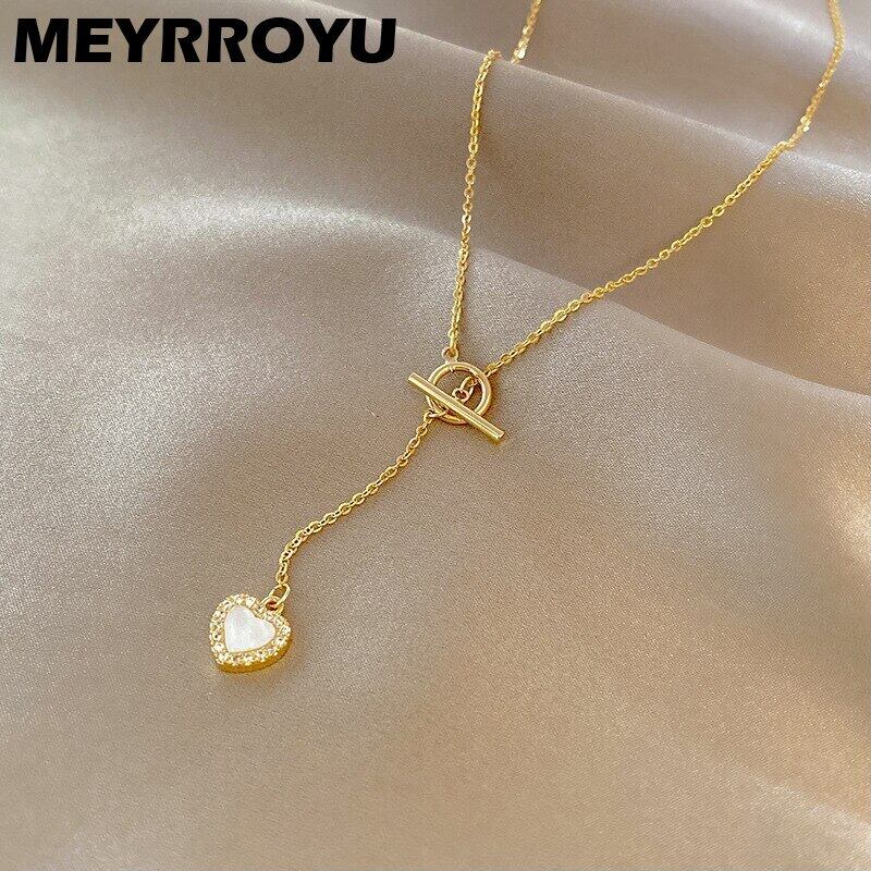 送料無料 MEYRROYUステンレススチールラブハートネックレス女性シンプルOTバックルジルコンロングペンダントネックレスパーティージュエリーギフト レース アクセサリー AE001171103313241