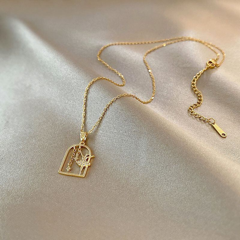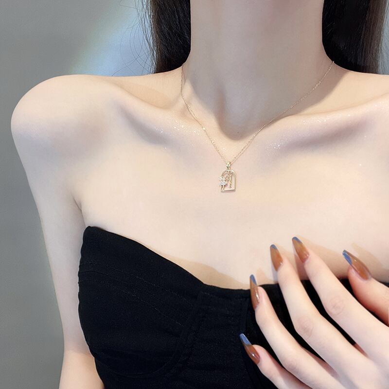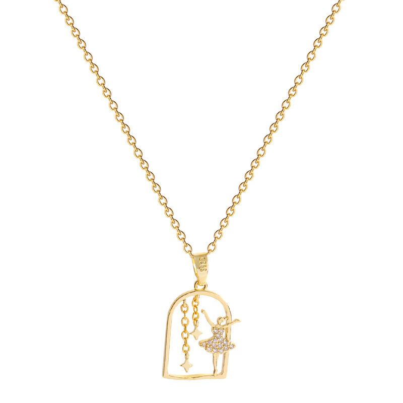 送料無料 MEYRROYU幾何学的なバレリーナガールステンレス鋼のネックレス女性ヴィンテージ美学ジルコンペンダントネックレス高級ジュエリー レース ビンテージ アクセサリー AE001166009445109