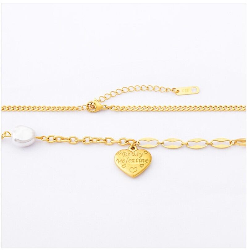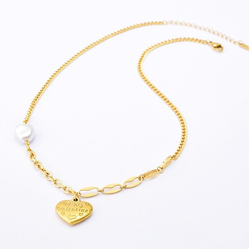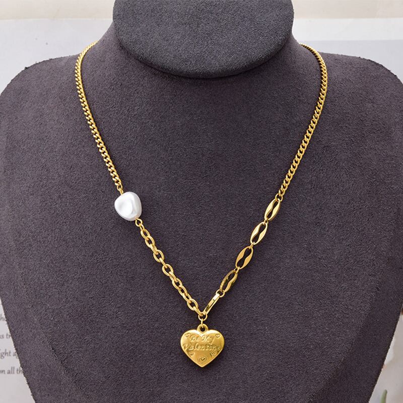 送料無料 MEYRROYUステンレススチールゴールドカラーパールハートペンダントネックレスレディースチョーカー2021トレンディなヒップホップギフトジュエリー レース 真珠 アクセサリー AE001163897281288