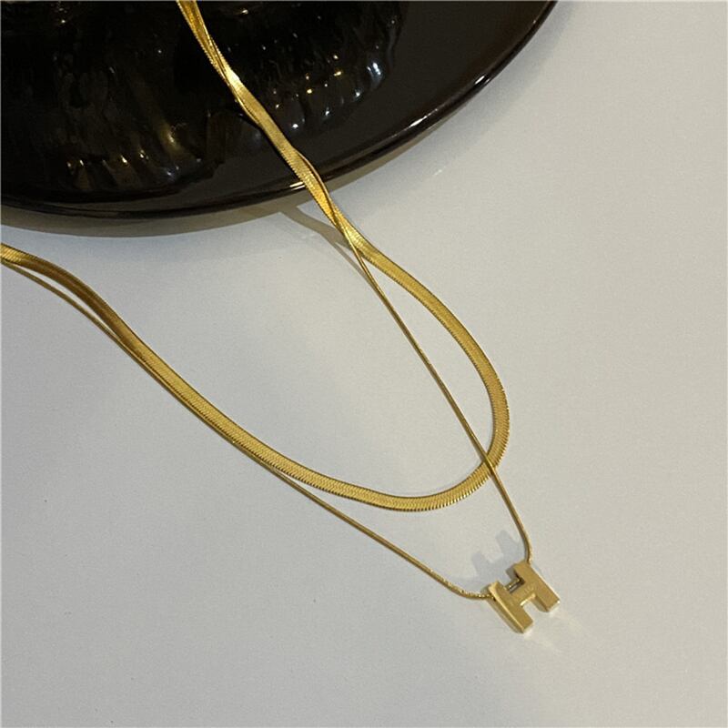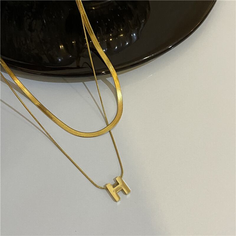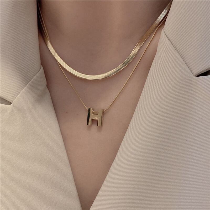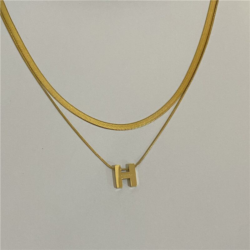 送料無料 MEYRROYUステンレス鋼パンク幾何学的2層文字Hペンダントネックレス女性ギフトトレンドチェーンパーティージュエリー レース アクセサリー AE001166602880077