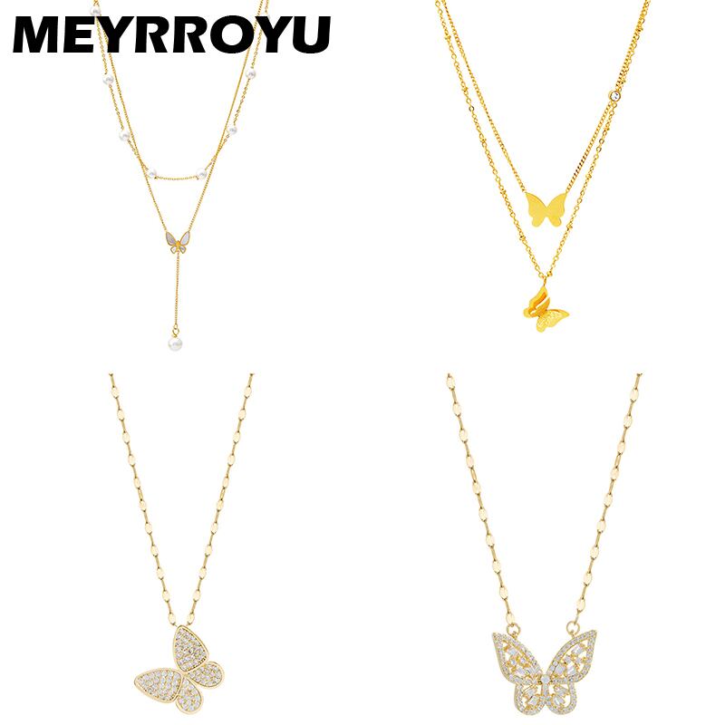 送料無料 MEYRROYUステンレススチールロマンティックジルコンバタフライペンダントネックレスレディース幾何学チェーン2021トレンドギフトジュエリー レース アクセサリー AE001173392113327