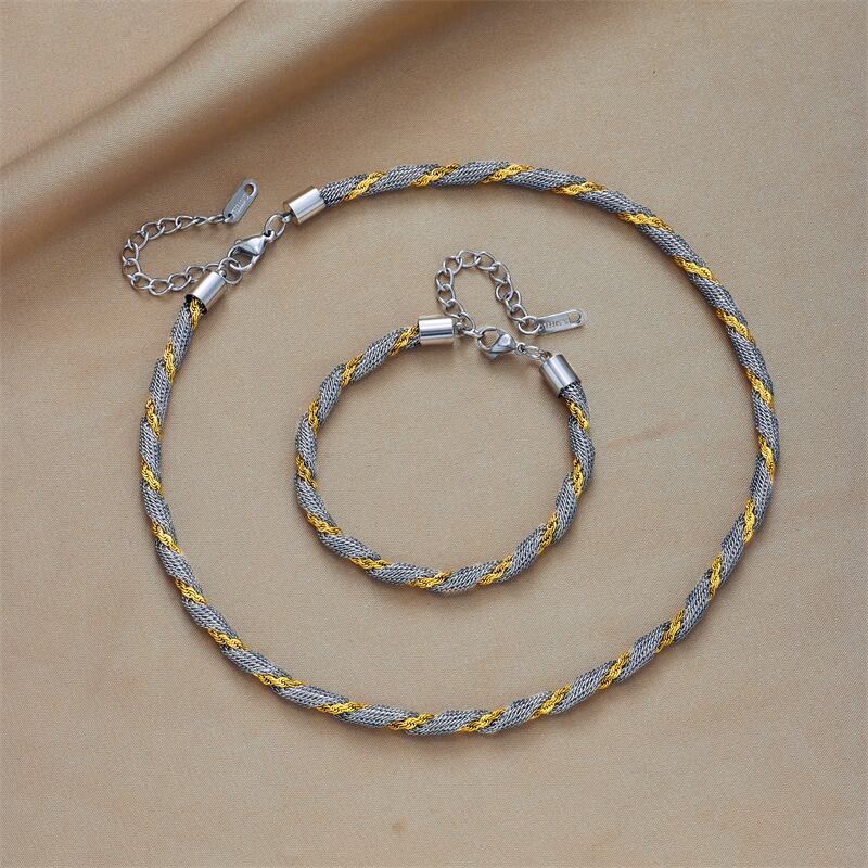 送料無料 ステンレス鋼グリーンストーンジオメトリテルスネークチェーンジュエリーセット女性のネックレスとブレスレットパーティーギフト レース アクセサリー AE001121521355505