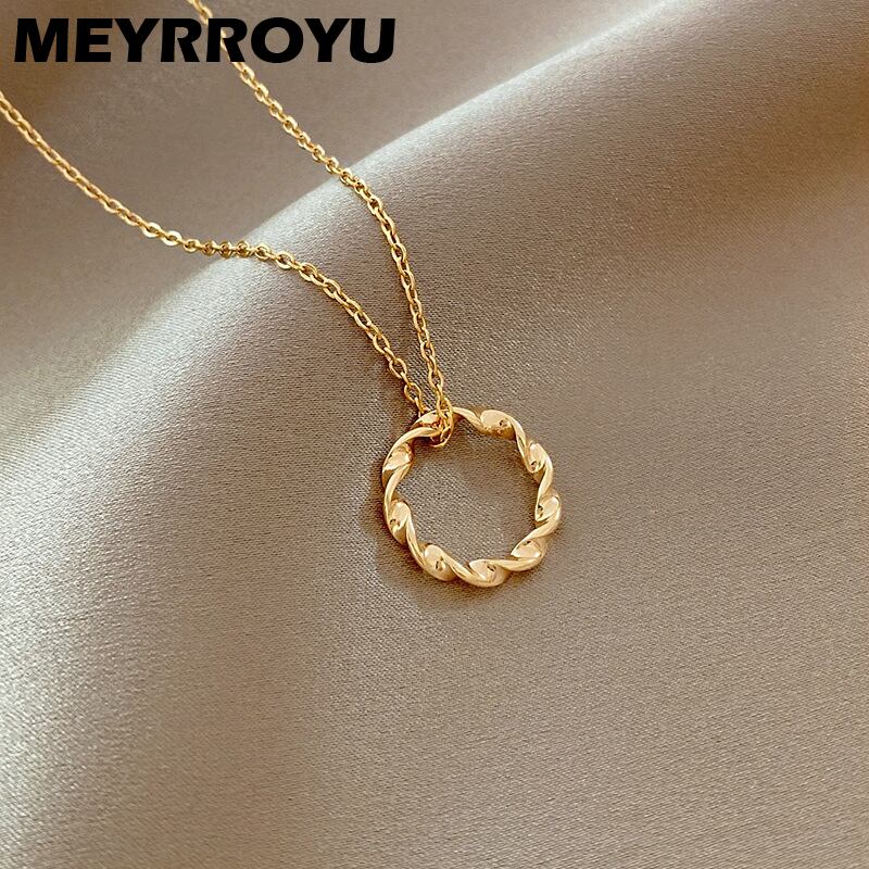 送料無料 MEYRROYUステンレススチールシンプルツイストサークルネックレス女性幾何学レトロトレンドペンダントネックチェーンジュエリーアクセサリー レース アクセサリー AE001144906081958