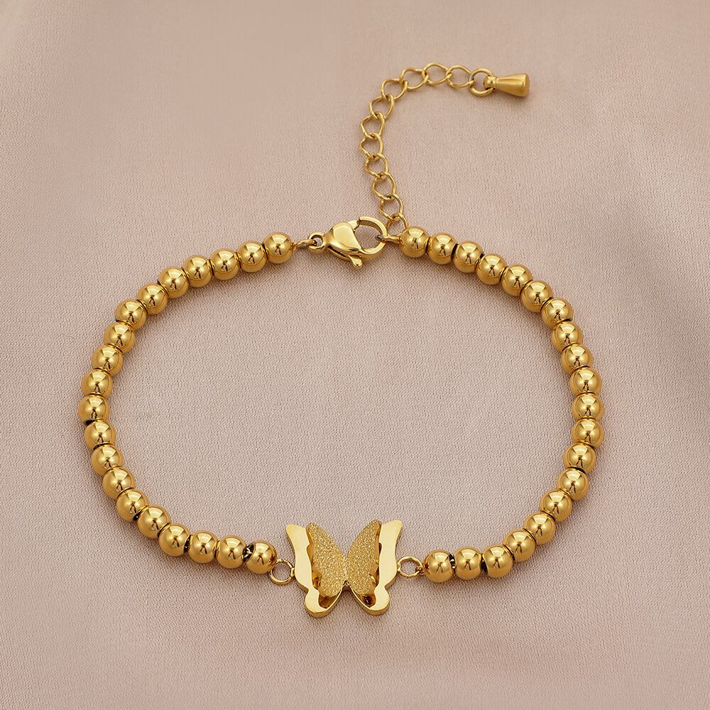 送料無料 MEYRROYUステンレススチールゴールドカラーバタフライビーズブレスレット女性2021トレンドロマンチックパーティーギフトジュエリー アクセサリー AE001159806490499