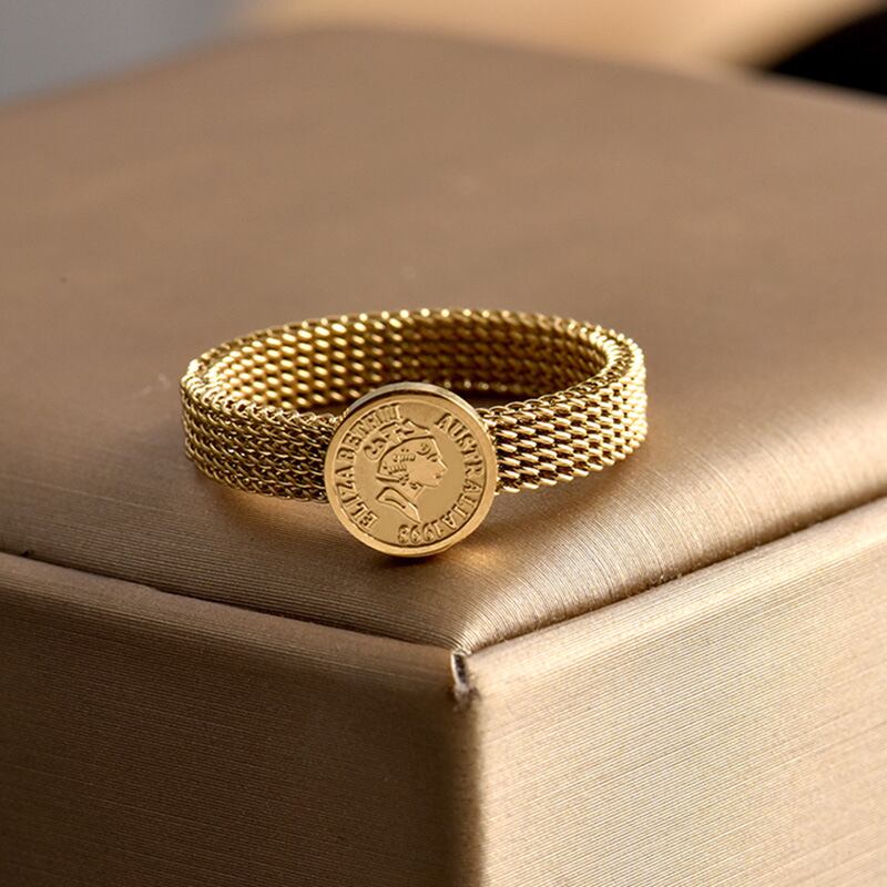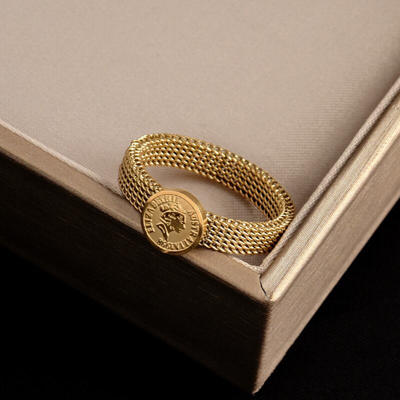 送料無料 MEYRROYUステンレススチールゴールドカラーPartraitリングアクセサリー2021トレンディなリング女性男性ギフトパーティージュエリーバッグ 指輪 アクセサリー AE001140193863600