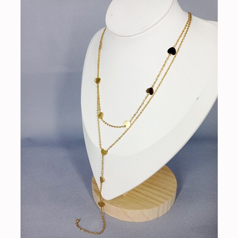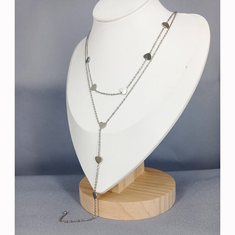 送料無料 MEYRROYUステンレススチールダブルレイヤーハートパンデントネックレスロングテルチョーカー2021パーティーギフトジュエリー レース アクセサリー AE001129616788701