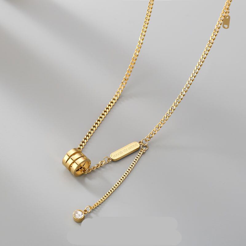 送料無料 MEYRROYUステンレススチールゴールドカラーTelTwineシリンダーペンダントネックレスレディースチェーン2021トレンドパーティーギフトジュエリー レース アクセサリー AE001181406625133
