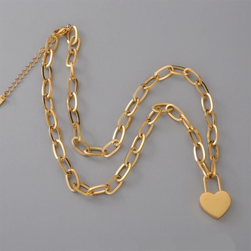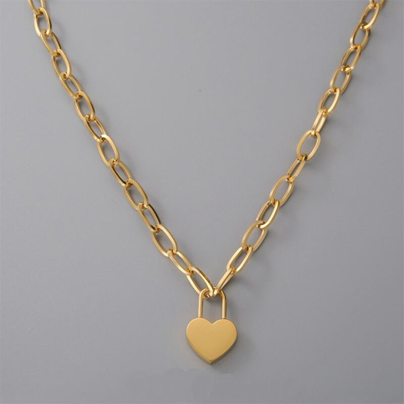 送料無料 MEYRROYUステンレススチールゴールドカラーハートロックネックレストレンディな太いチェーンチョーカーペンダント女性2021ジュエリー レース アクセサリー AE001157377268803