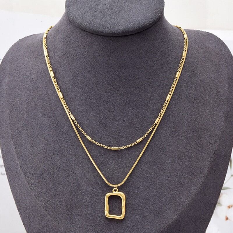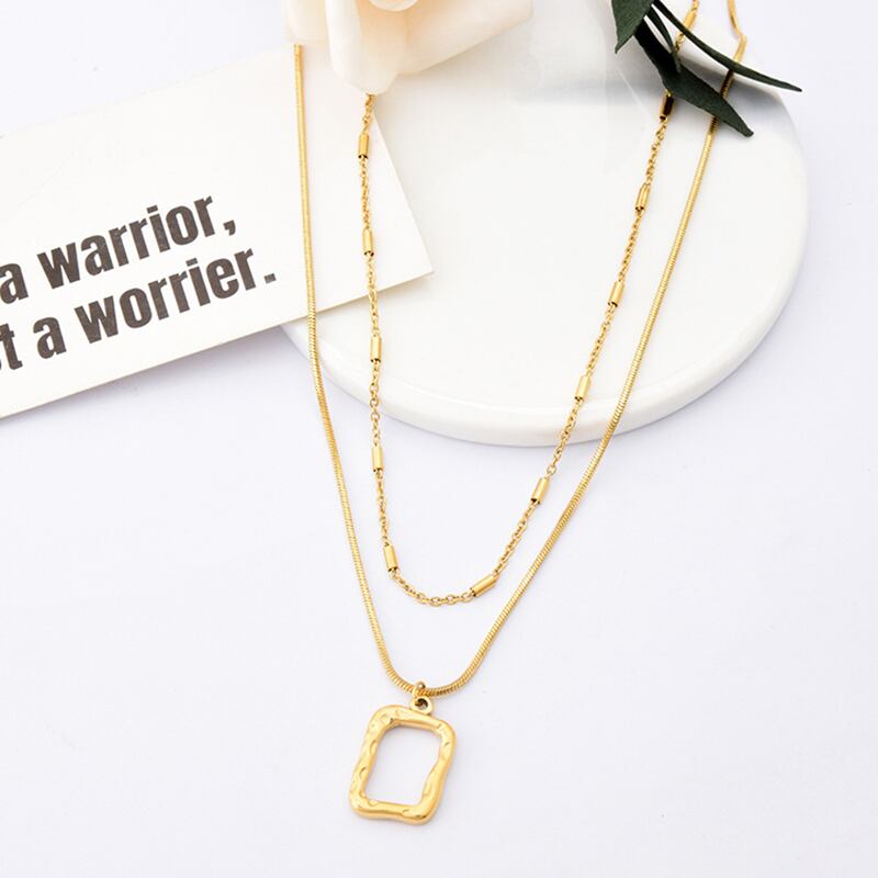 送料無料 MEYRROYUステンレススチールゴールドカラー長方形ペンダントネックレス女性ダブルレイヤーチョーカー2021トレンディなギフトジュエリー レース アクセサリー AE001138117706053