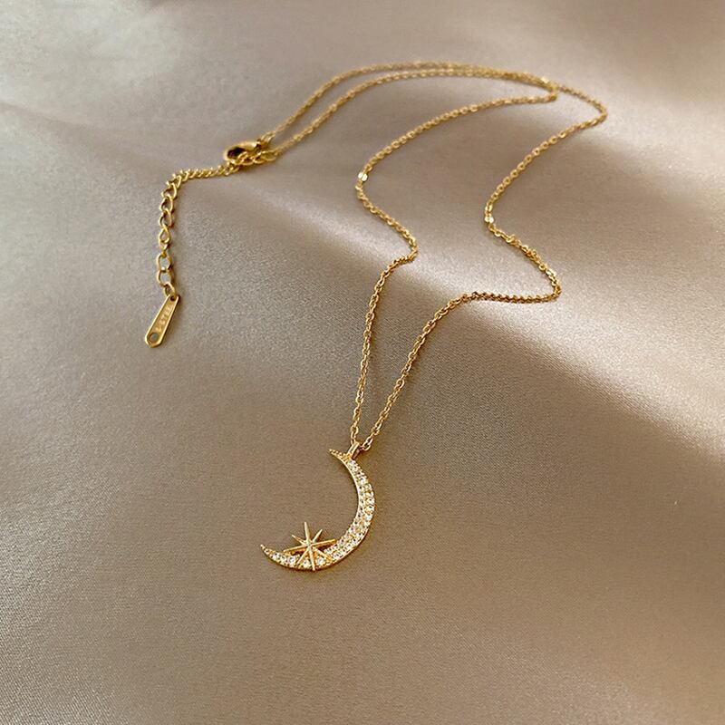 送料無料 MEYRROYUステンレススチールスタームーンネックレスレディースラグジュアリージルコンペンダントクラビクルチェーンウェディングパーティージュエリーギフト レース アクセサリー AE001141930685691