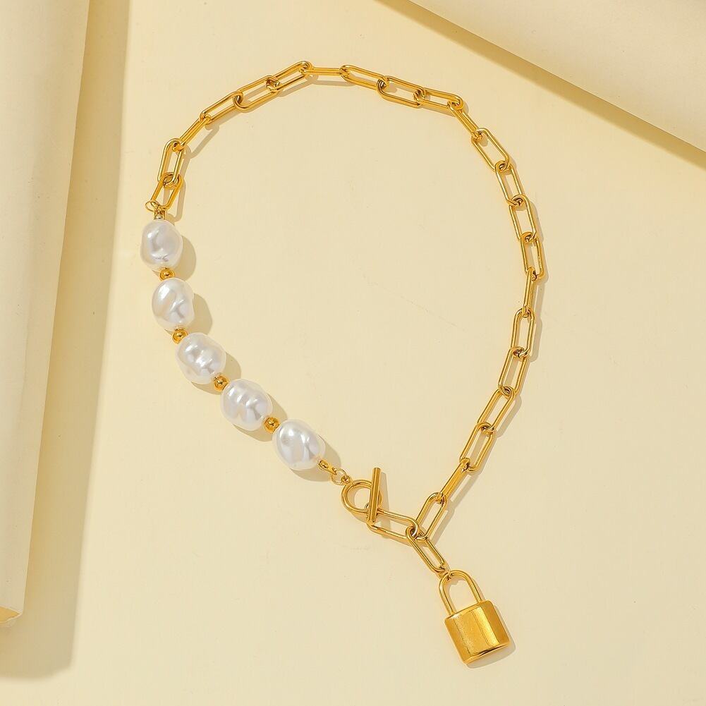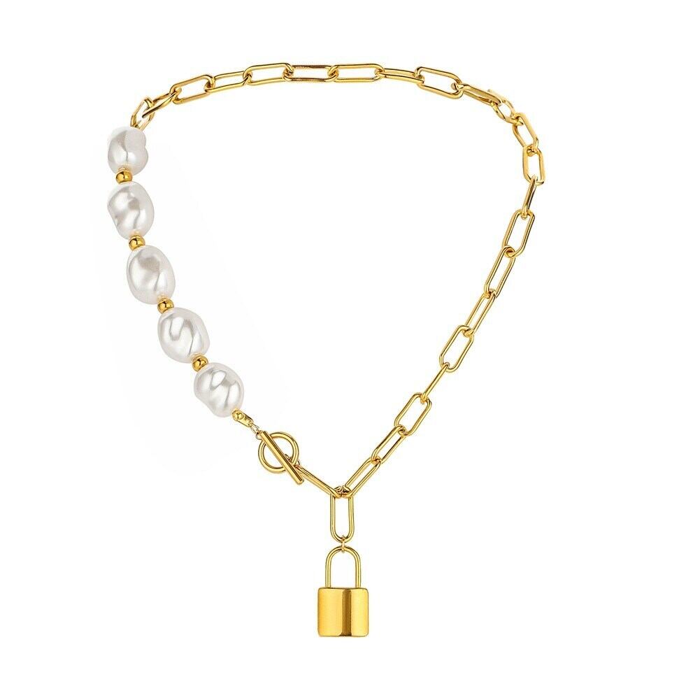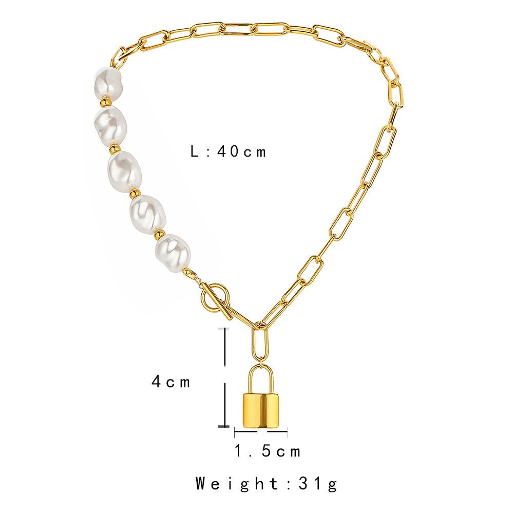 送料無料 MEYRROYUステンレススチールゴールドカラーロックネックレスレディースシックパールチェーンチョーカー2021トレンドパーティーペンダントジュエリー レース 真珠 アクセサリー AE001199025503704