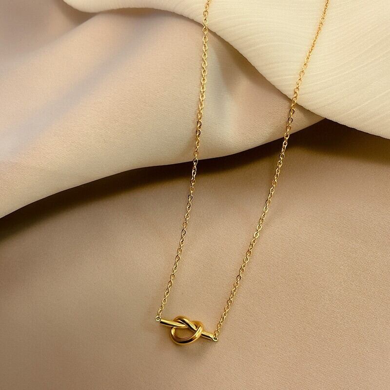 送料無料 MEYRROYUステンレススチールゴールドカラーノットパンデントネックレスチョーカー2021トレンディガールのパーティーギフトジュエリー レース アクセサリー AE001135265101769