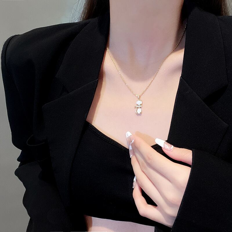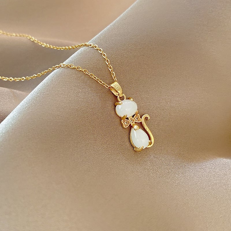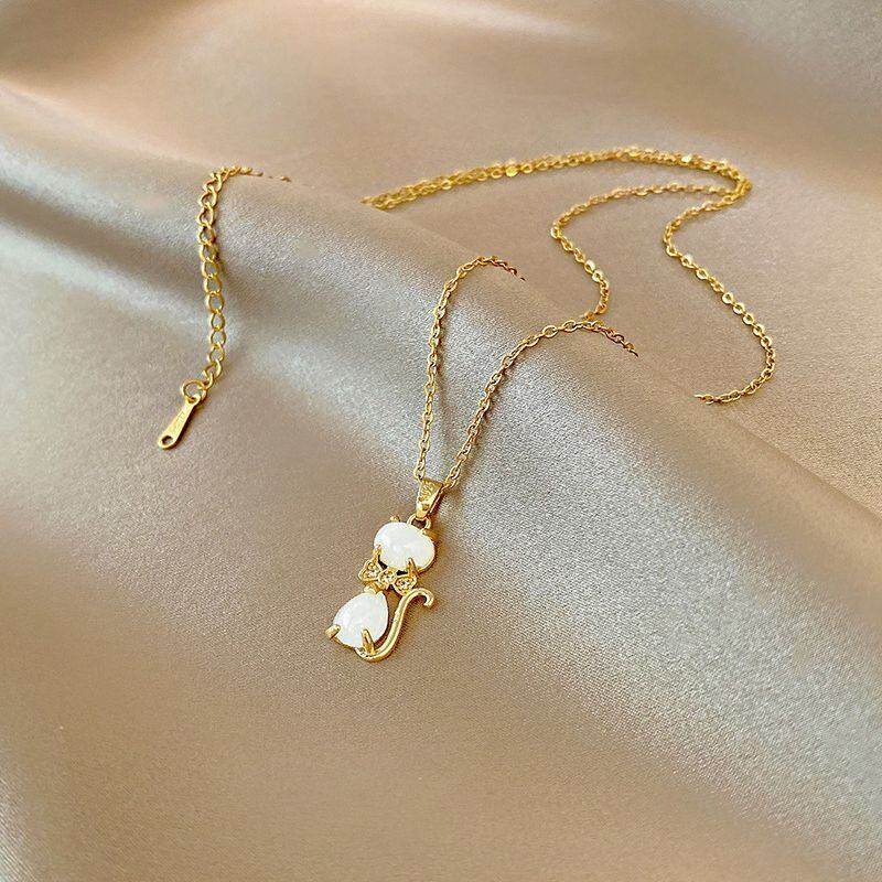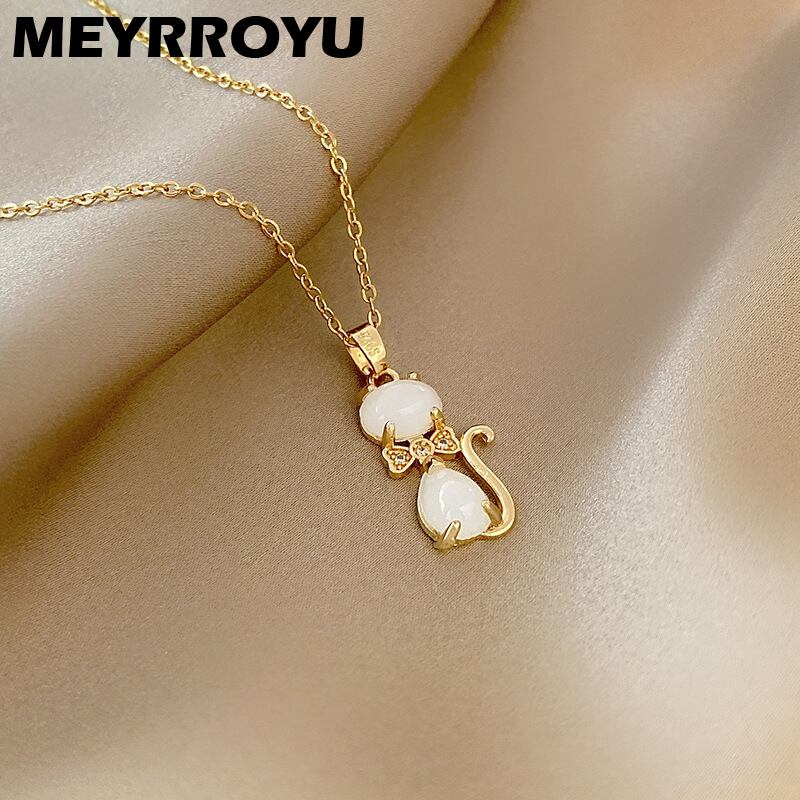 送料無料 MEYRROYUステンレススチールスウィートキュートクリスタルキャットペンダントネックレス女性パーソナリティ鎖骨チェーンパーティージュエリーアクセサリー レース 大人ガーリー カジュアル アクセサリー AE001188288985097