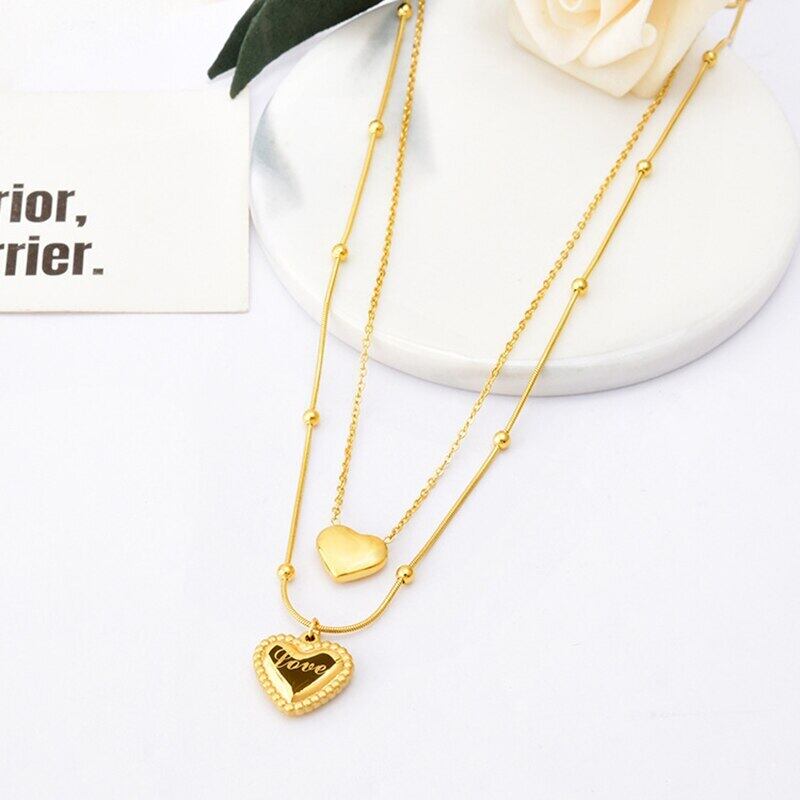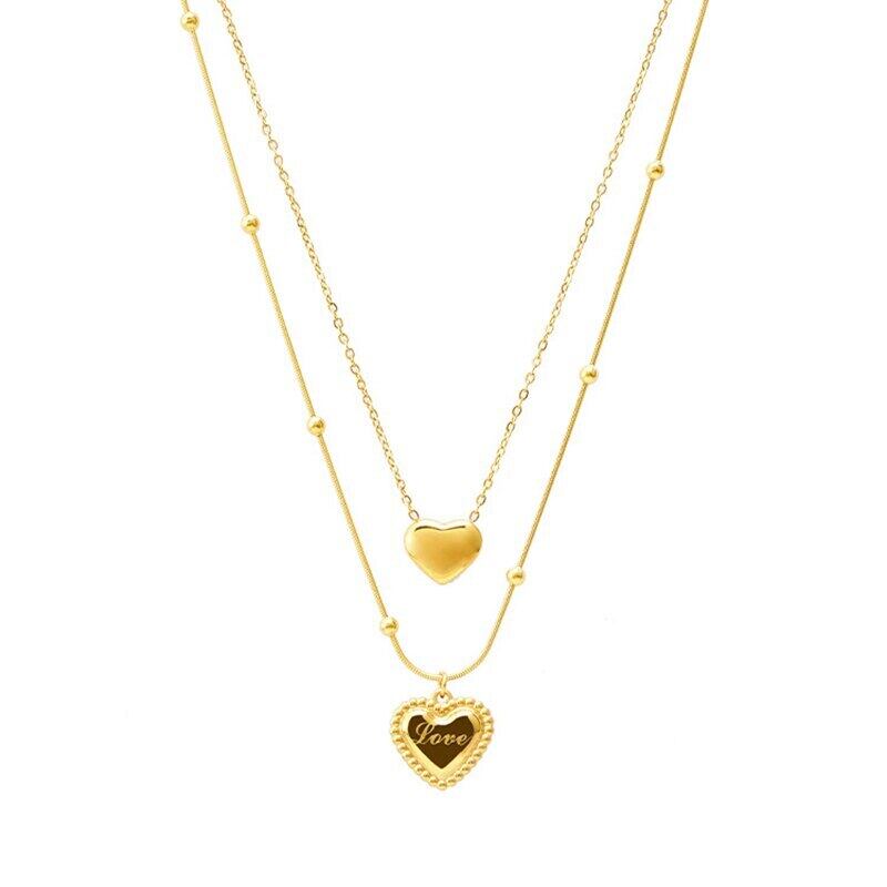 送料無料 MEYRROYUステンレススチール2層ビーズハートペンダントネックレスレディースチェーン2021トレンドロマンティックパーティーギフトジュエリー レース アクセサリー AE001196534959473