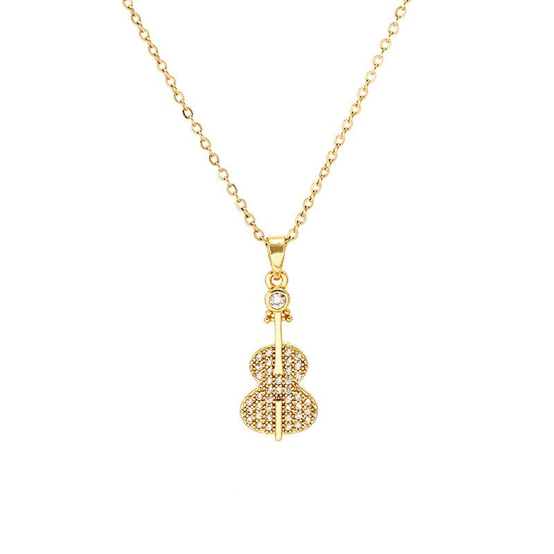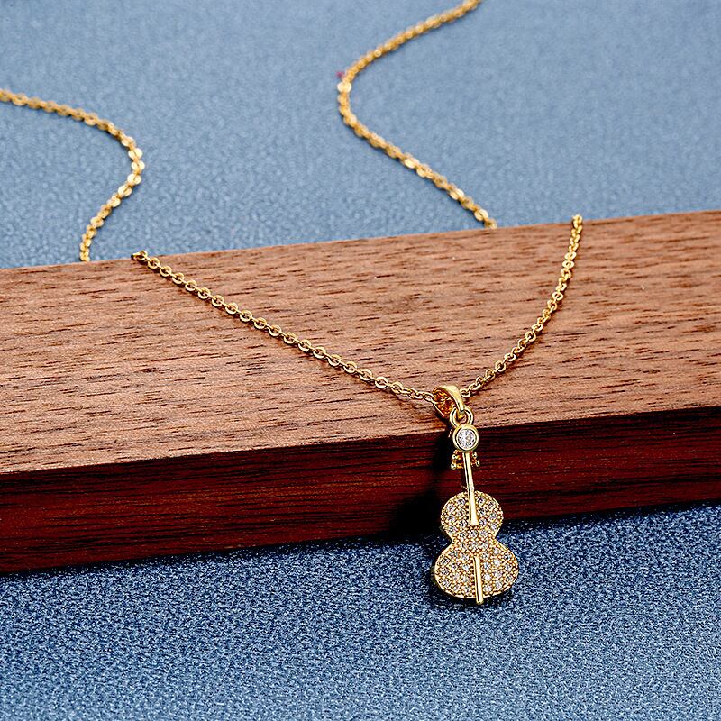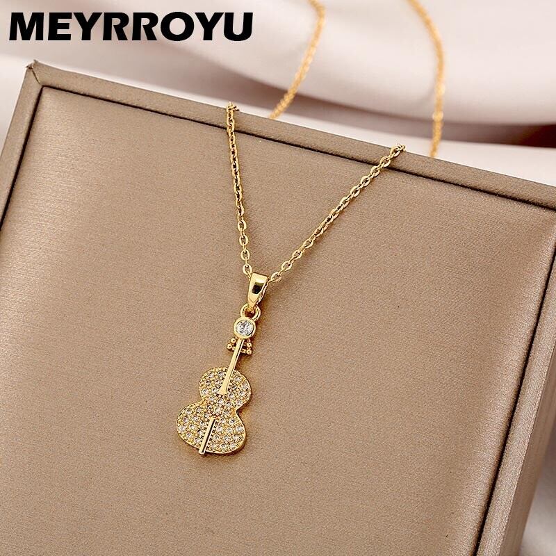 送料無料 MEYRROYUステンレススチールゴールデン鎖骨チェーンヴィンテージバイオリンジルコンペンダントネックレス女性ヒップホップジュエリーギフト レース ビンテージ アクセサリー AE001159893823516